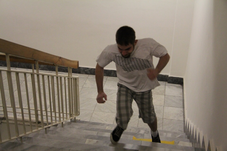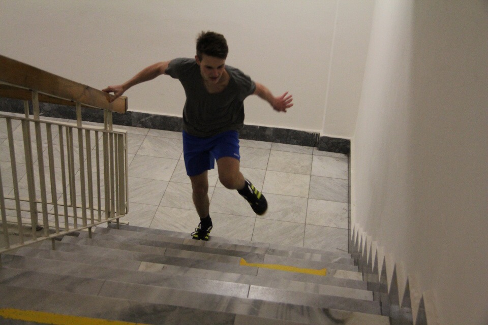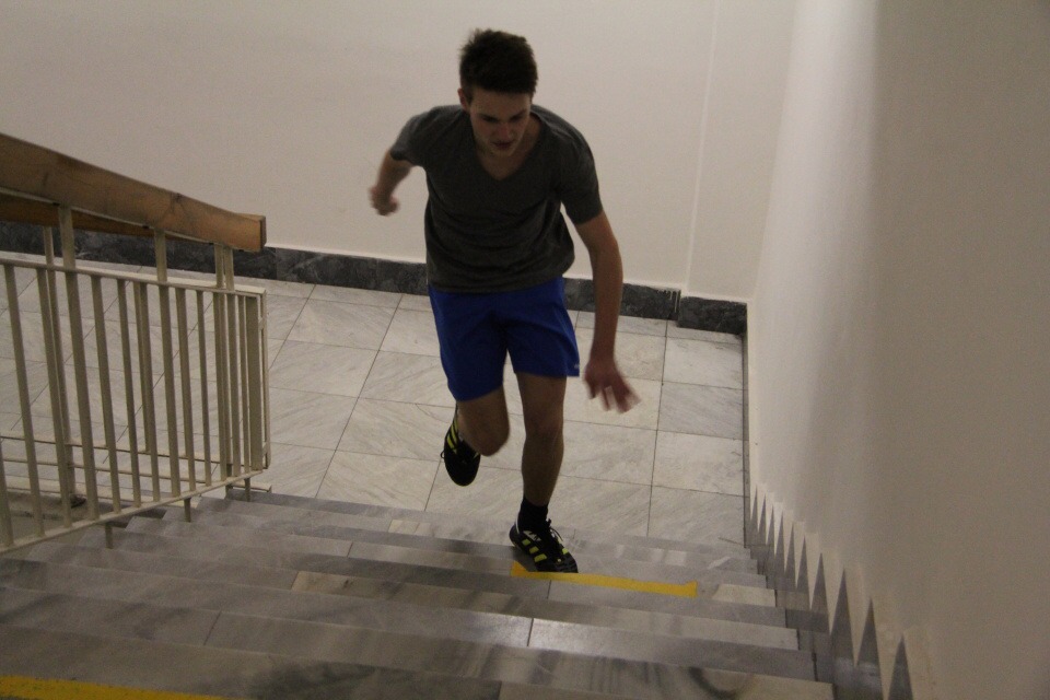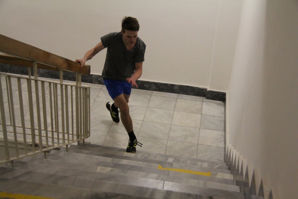 Běh do schodů /za HŠ soutěžilo 10 studentů /