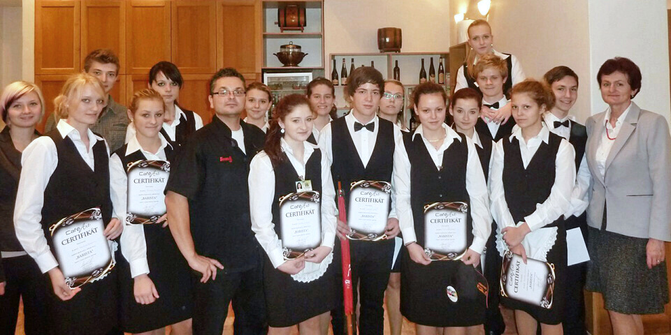 - Základy přípravy káv v gastronomických provozech, mezinárodně uznávané standardy pro přípravu nápojů z kávy, osvojování si správných technologických postupů, práci s mlékem, péči o technologie.