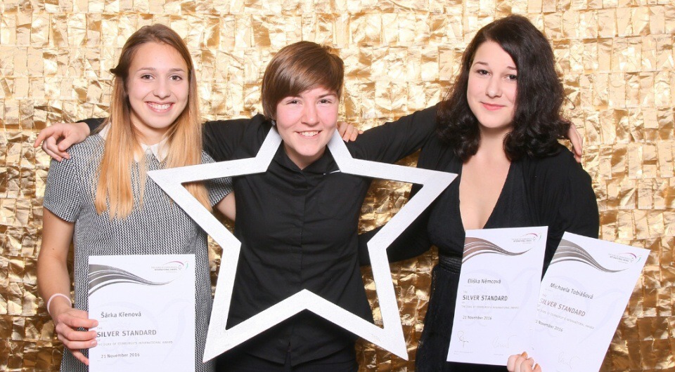 Studentky naší školy – Šárka Křenová, Míša Tobiášová a Eliška Němcová získaly po ročním snažení Mezinárodní cenu vévody z Edinburghu. Stříbrné medaile převzaly z rukou patronů DofE na slavnostní ceremonii v centru umění DOX v Praze dne 21. listopadu 2016. Blahopřejeme!