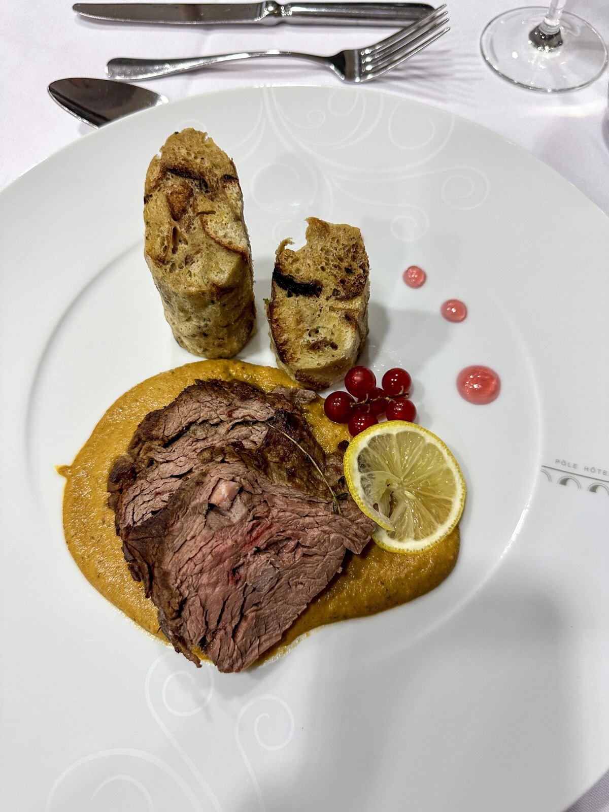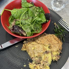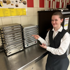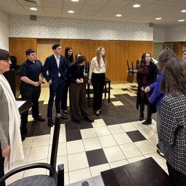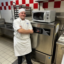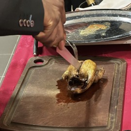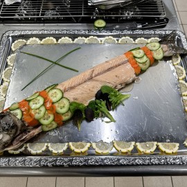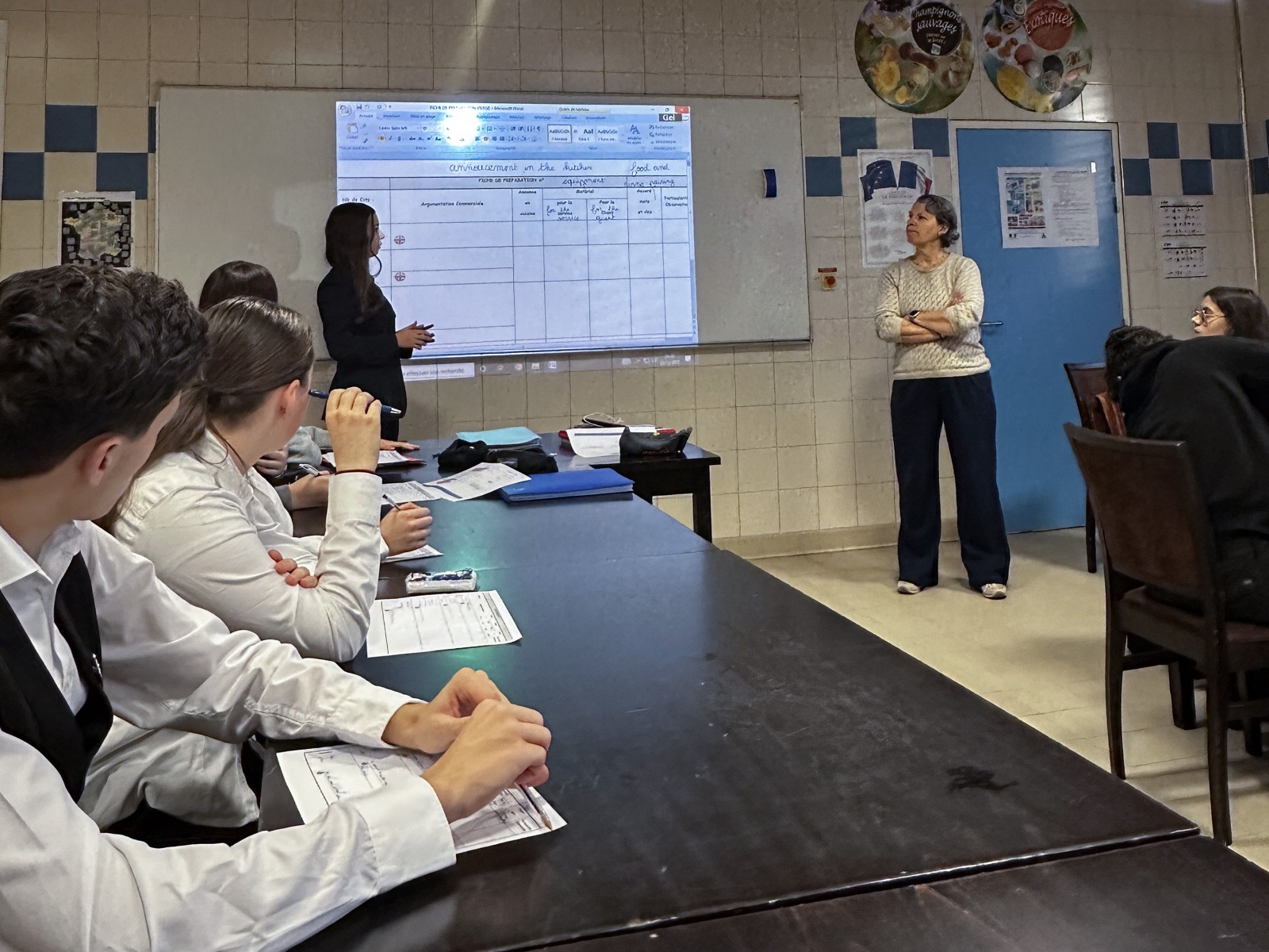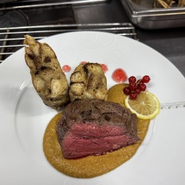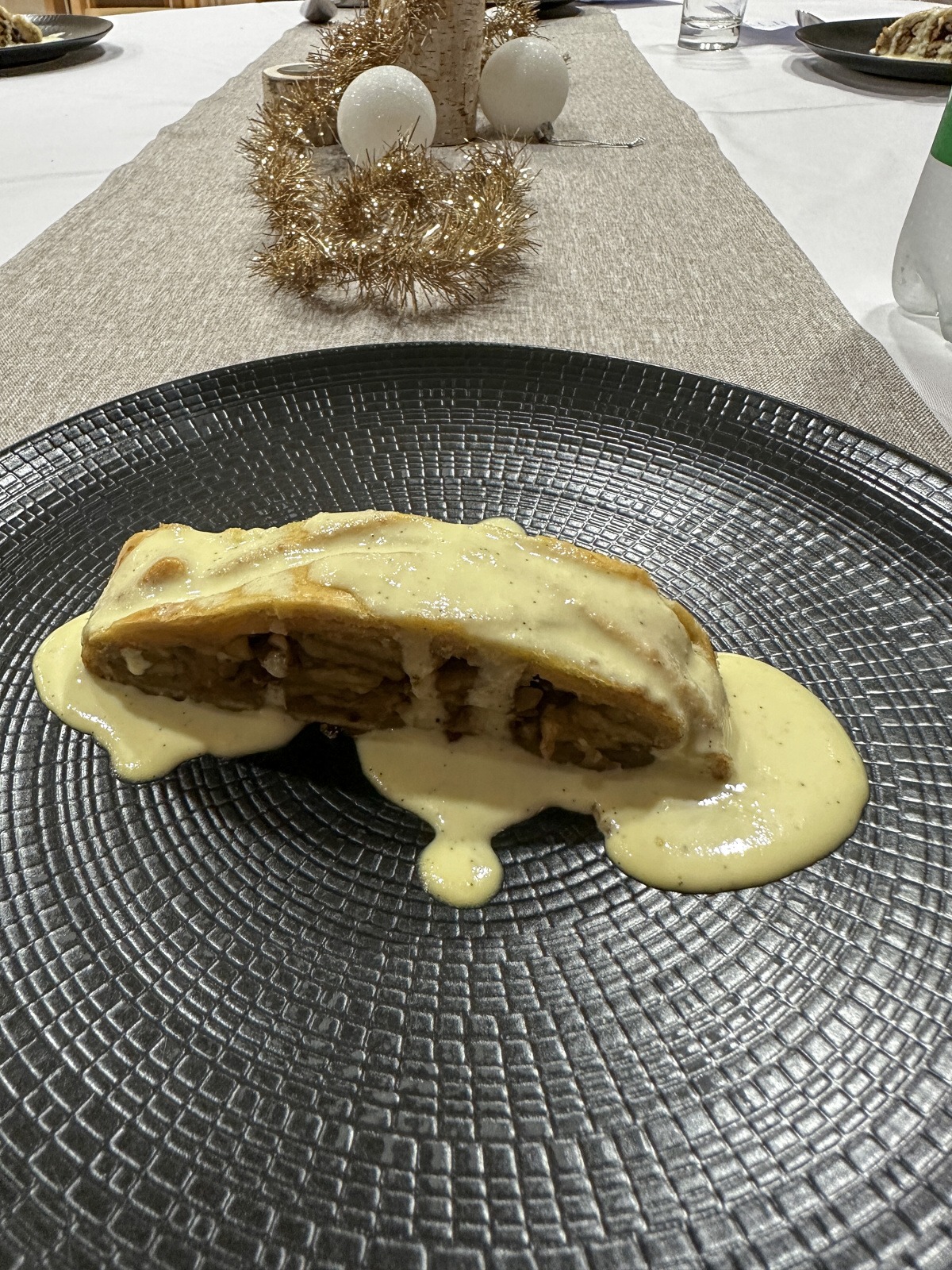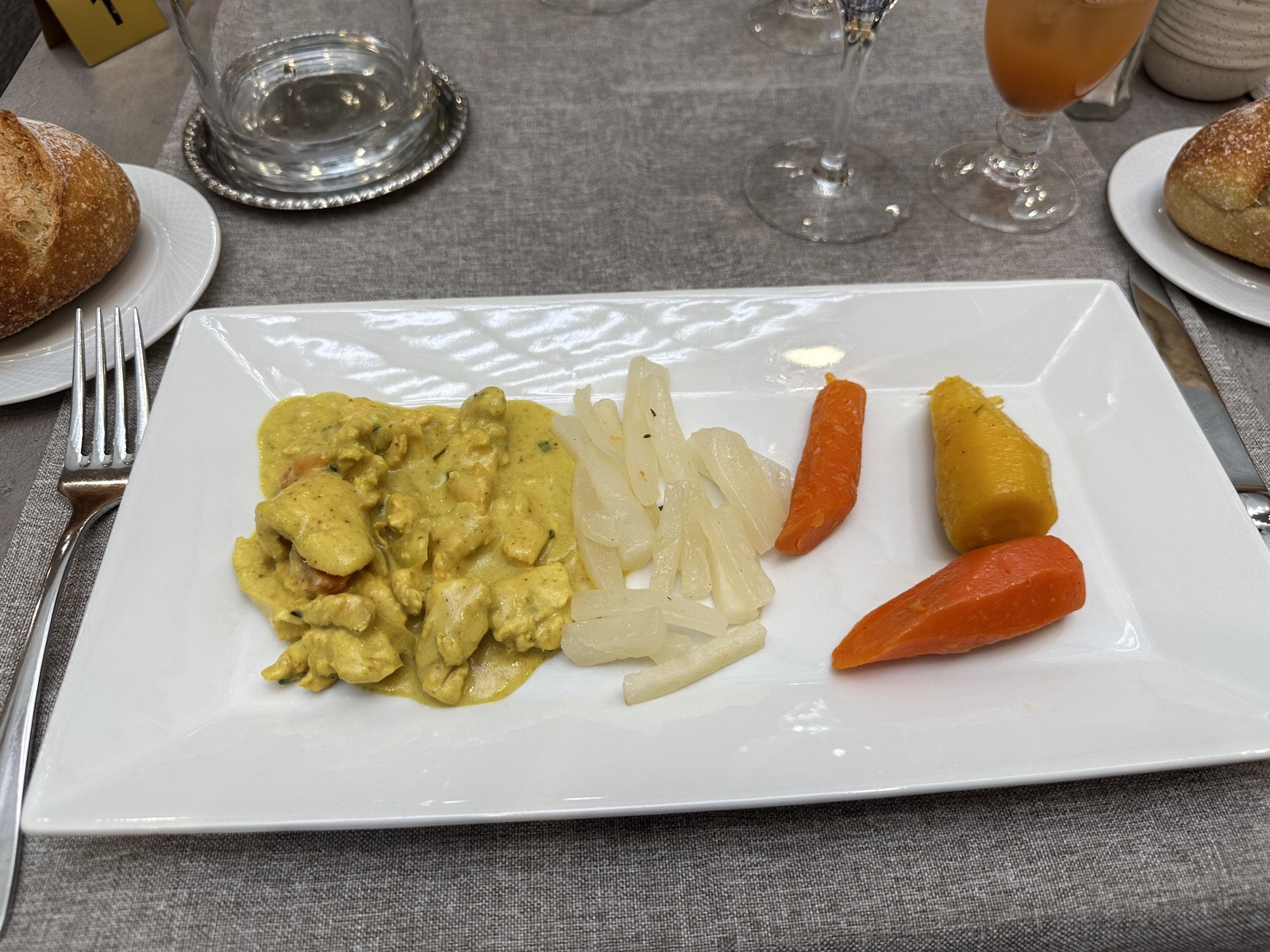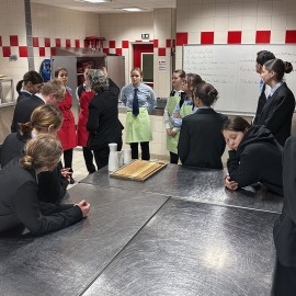 Čtvrteční ráno se naše skupina vydala na místní trhy s cílem podpořit udržitelnou gastronomii. Místní škola totiž nakupuje suroviny od lokálních dodavatelů a následně je využívá při večerním provozu restaurace. Odpoledne se tři z nás zapojili do obsluhy v restauraci a další tři pracovali v kuchyni, kde připravovali české menu. Mohli jsme si tak vyzkoušet práci s moderními technologiemi. Zážitek to určitě nebyl jen pro nás, ale i pro hosty, kteří přišli na večeři ochutnat českou kuchyni. Servírován byl hovězí vývar s játrovými knedlíčky, svíčková s karlovarským knedlíkem a jako dezert nechyběl jablečný závin přelitý vanilkovou omáčkou.