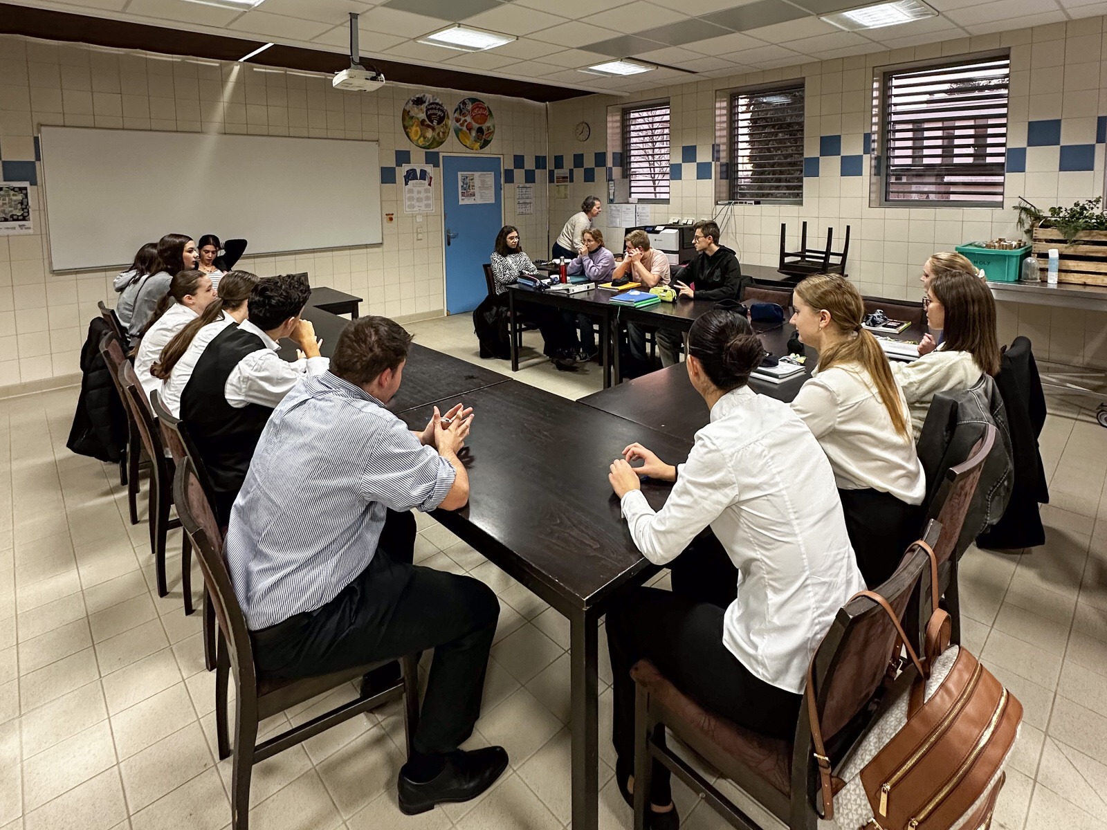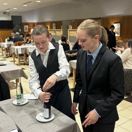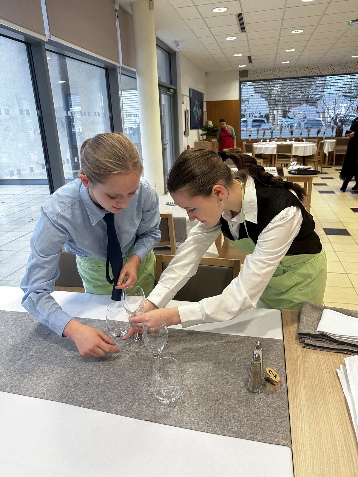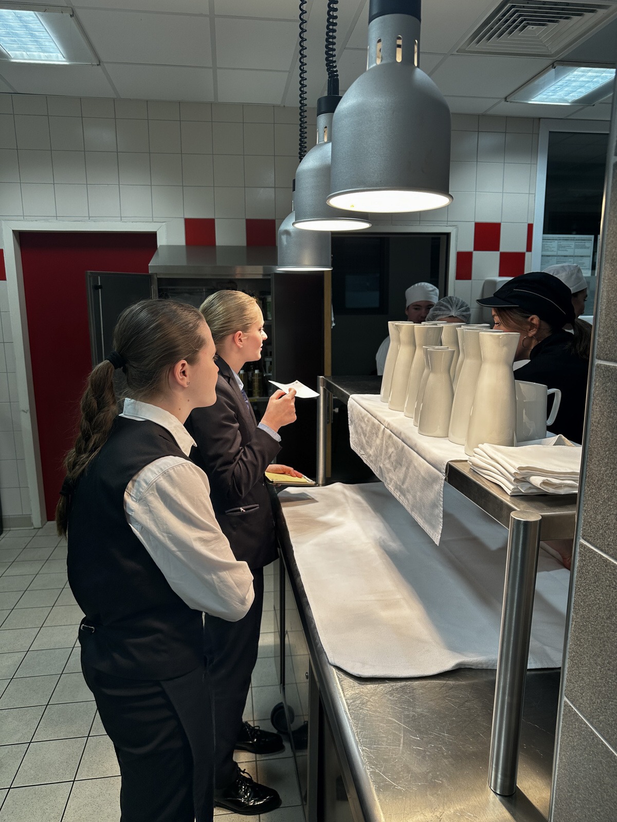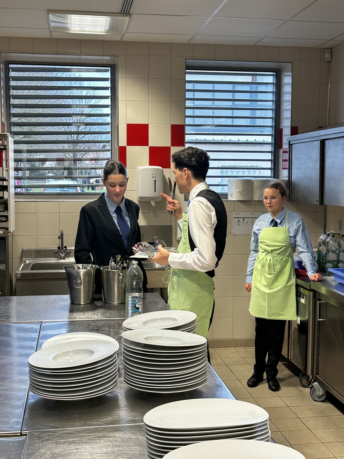 V úterý jsme se zúčastnili dopoledního vyučování teorie předmětu TOS spojeného s ekonomií. Studenti probírali menu, které se servírovalo ve čtvrtek. Odpoledne jsme se připojili k jiné třídě a krátce si vyzkoušeli obsluhu v restauraci.