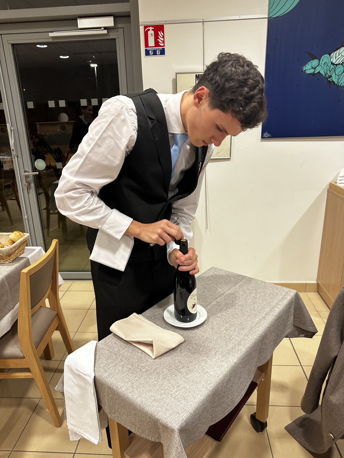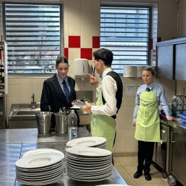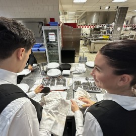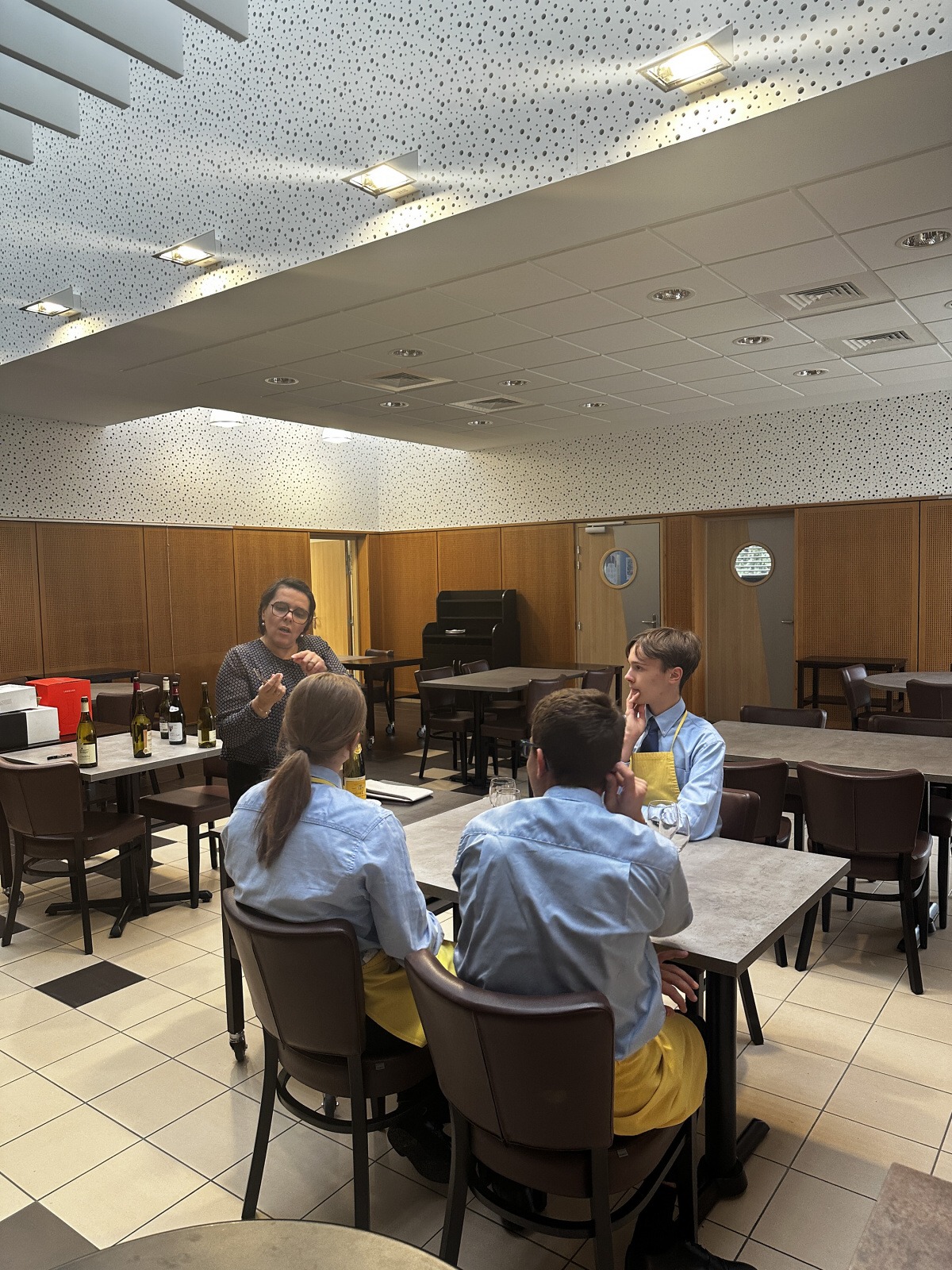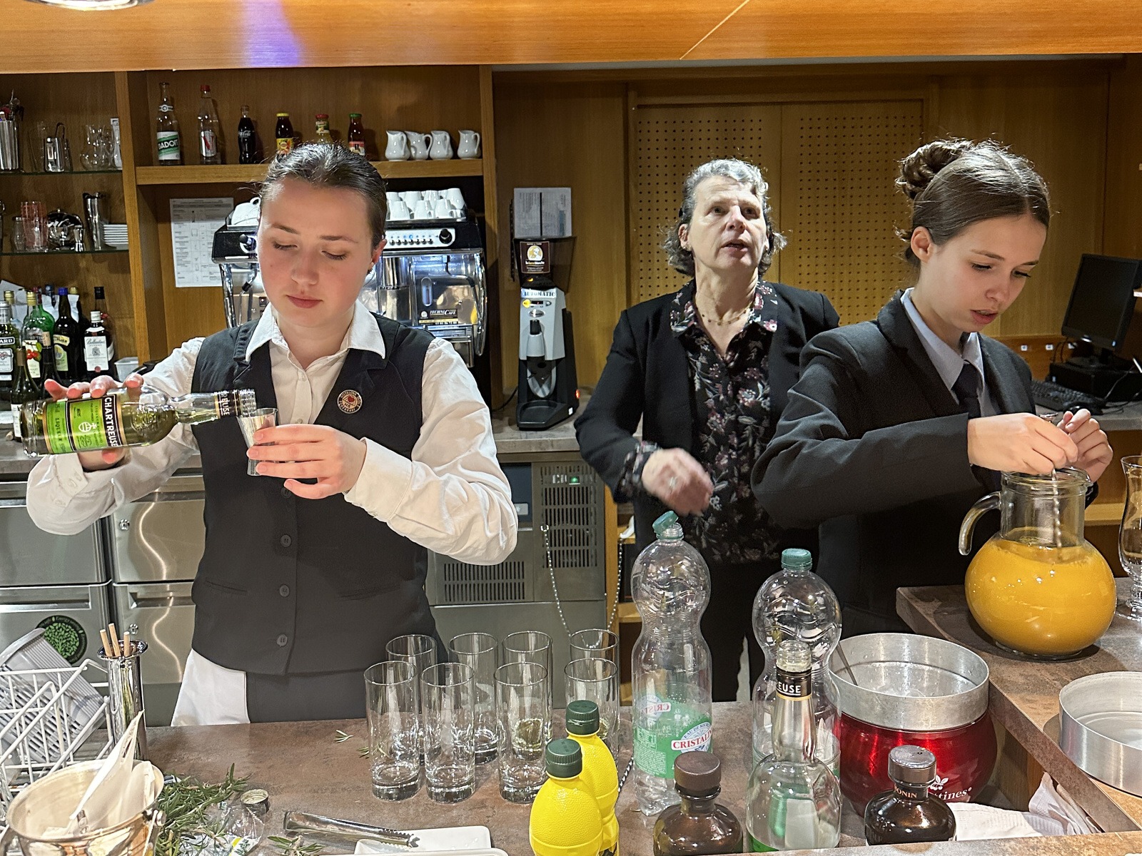 V úterý jsme se zúčastnili dopoledního vyučování teorie předmětu TOS spojeného s ekonomií. Studenti probírali menu, které se servírovalo ve čtvrtek. Odpoledne jsme se připojili k jiné třídě a krátce si vyzkoušeli obsluhu v restauraci.