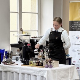 Jako první soutěžila Tereza, která se přihlásila do baristické části soutěže a vybojovala pro naši školu krásné 4. místo – jsme na ni moc hrdí!