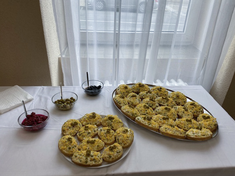 V rámci projektu Komunikace s hostem v cizím jazyce jsme připravili pro svoji třídní učitelku a španělštinářku v jedné osobě Mgr. Pavlínu Frančíkovou tradiční španělská jídla: gazpacho, studenou polévku ideální na léto, ensalada mixta a ensaladilla rusa, paella, slavný pokrm z rýže s krevetami a kuřetem, empanadillas, galicijské taštičky plněné masovou a sýrovou směsí, a churros, lahodný smažený dezert podávaný s horkou čokoládou. Samozřejmě nechyběla ani nealkoholická sangría a španělská hudba.