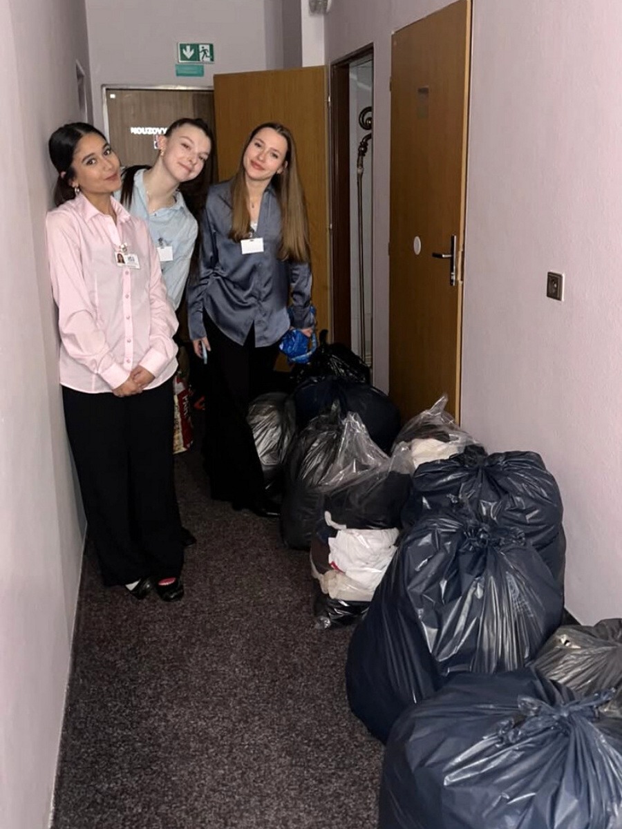 V průběhu měsíce března 2025 se naše škola zapojila do charitativní akce, která opět ukázala ochotu naší školy pomáhat těm, kteří to potřebují. Díky společnému úsilí studentů a učitelů se podařilo vybrat celkem 14 velkých pytlů plných oblečení, bot a malých kabelek či batohů, určených pro dospělé i malé děti. Tyto dary poputují do pražského charitativního centra KlokTex, kde pomohou lidem v nouzi.
