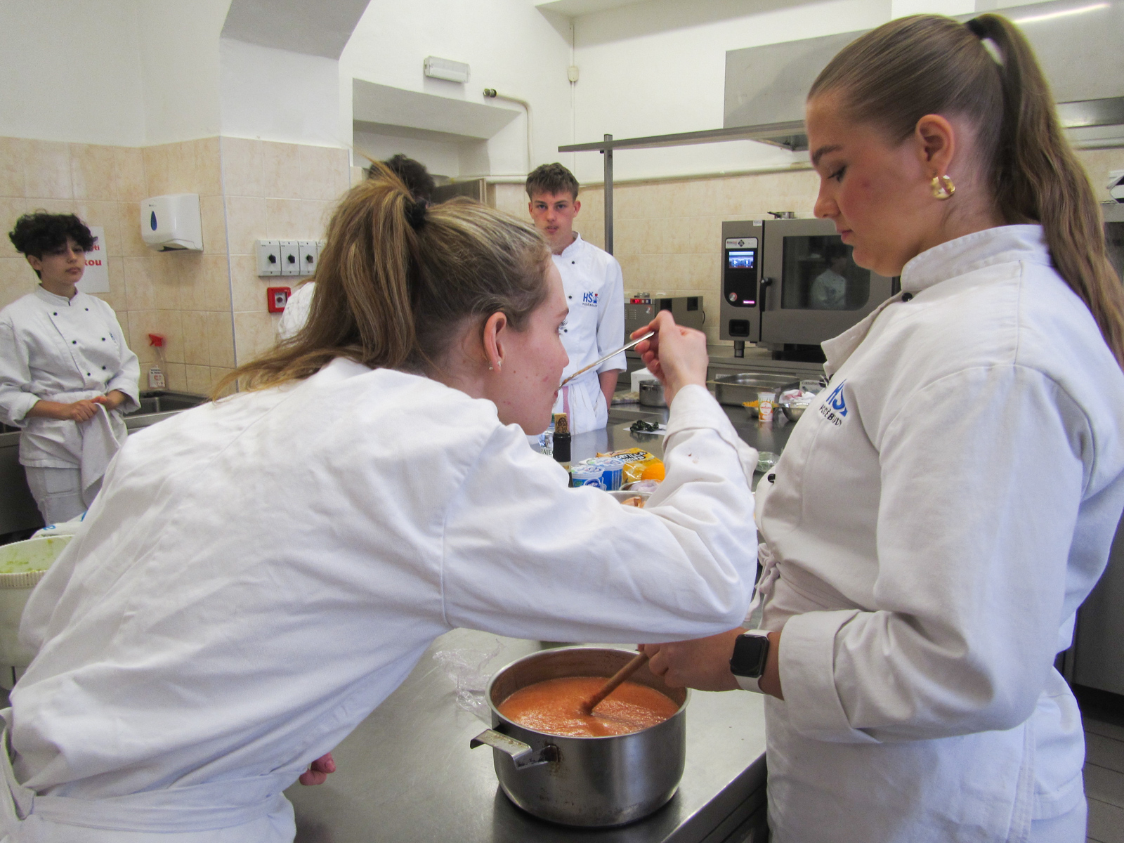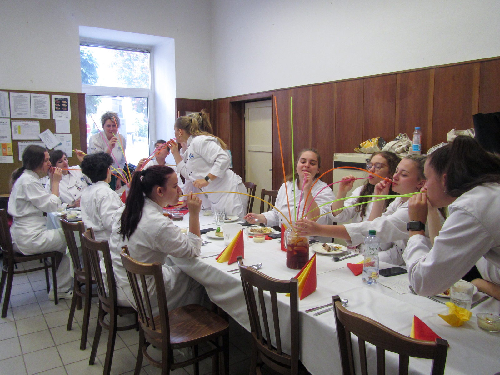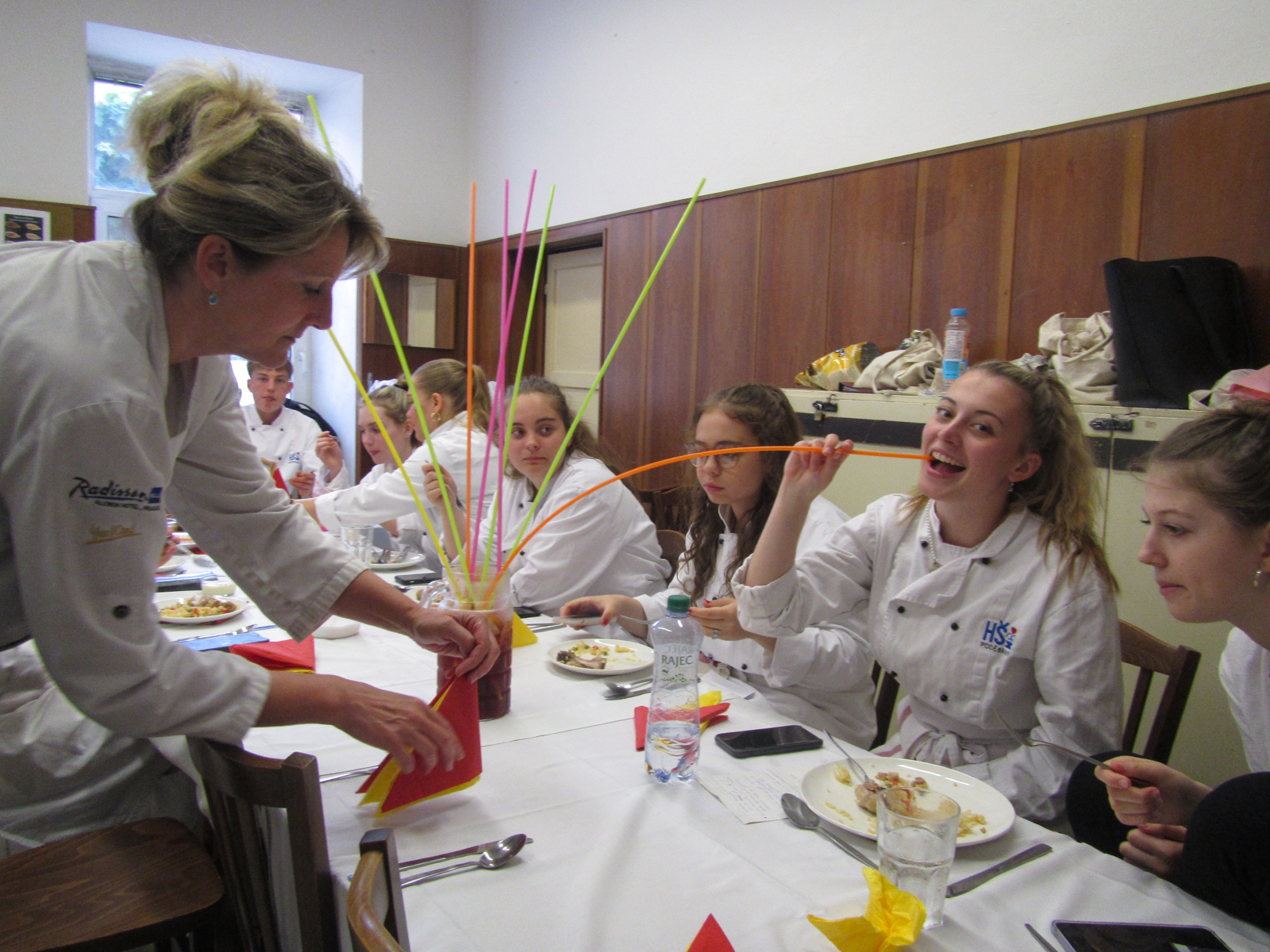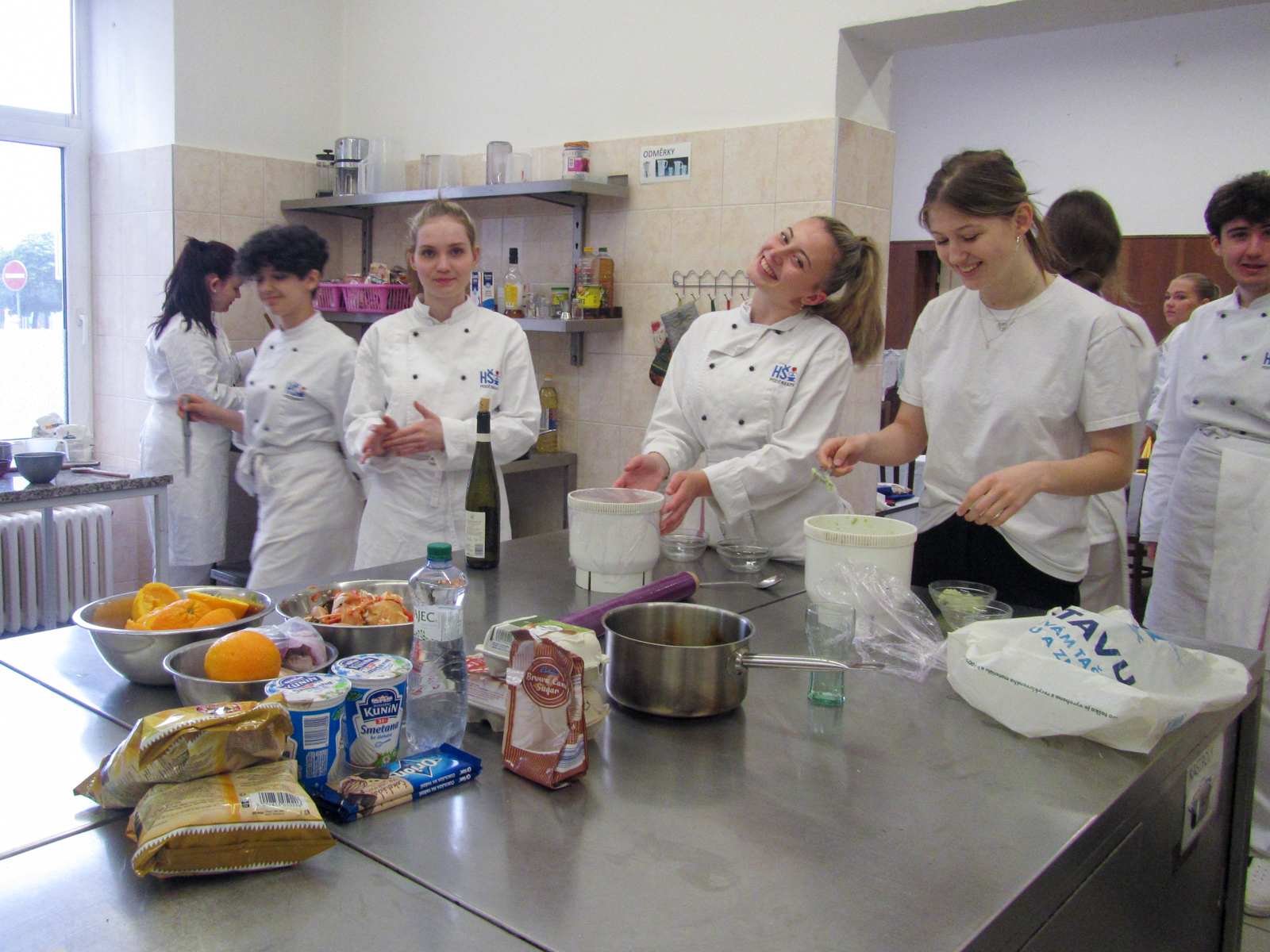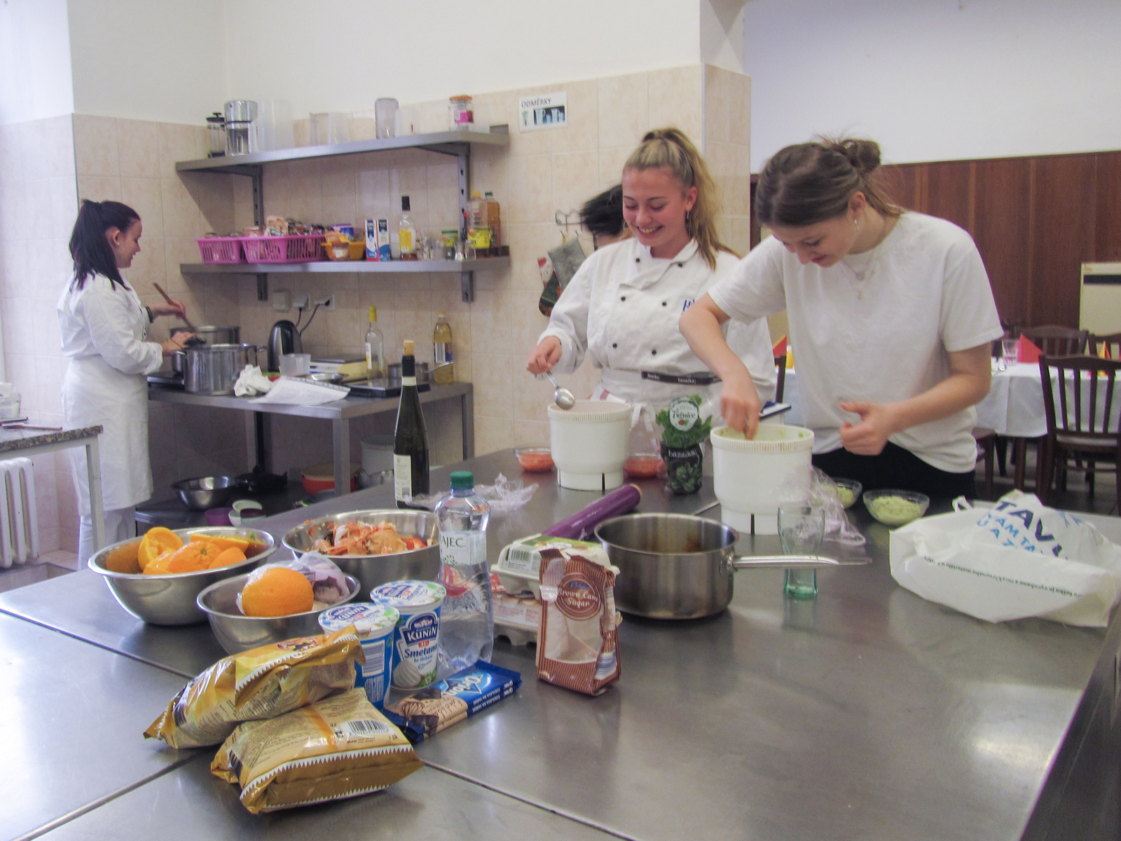 Clase de cocina espaňola – hodina španělského vaření s 2.D se opět nesla v rytmu temperamentní hudby, tance a přípravy typických pokrmů. U stolu nechyběla ani sangría, což akcentovalo jak dobrou náladu, tak rozhovory ve španělštině. Podávalo se gazpacho, paella, tortilla espaňola clásica, z Mexika k nám zabloudily nachos a tři fantastické dipy, flambovala se crema catalana, podávaly churros s karamelem a s naprosto úžasnou salsou z čokolády a chilli.