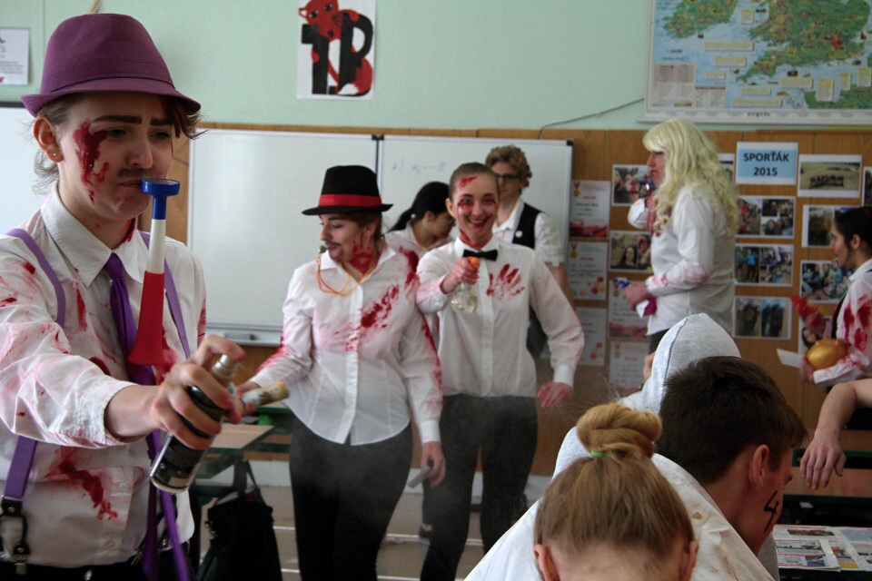 Když přišlo osm hodin, každá třída maturantů postupně obešla všechny učebny ve škole. Tradičně „ovoněli“ celou školu, studenti do kasičky hodili pár těch drobných, odměnou nám byly bonbony a píseň od maturantů, kterou si každá třída připravila.