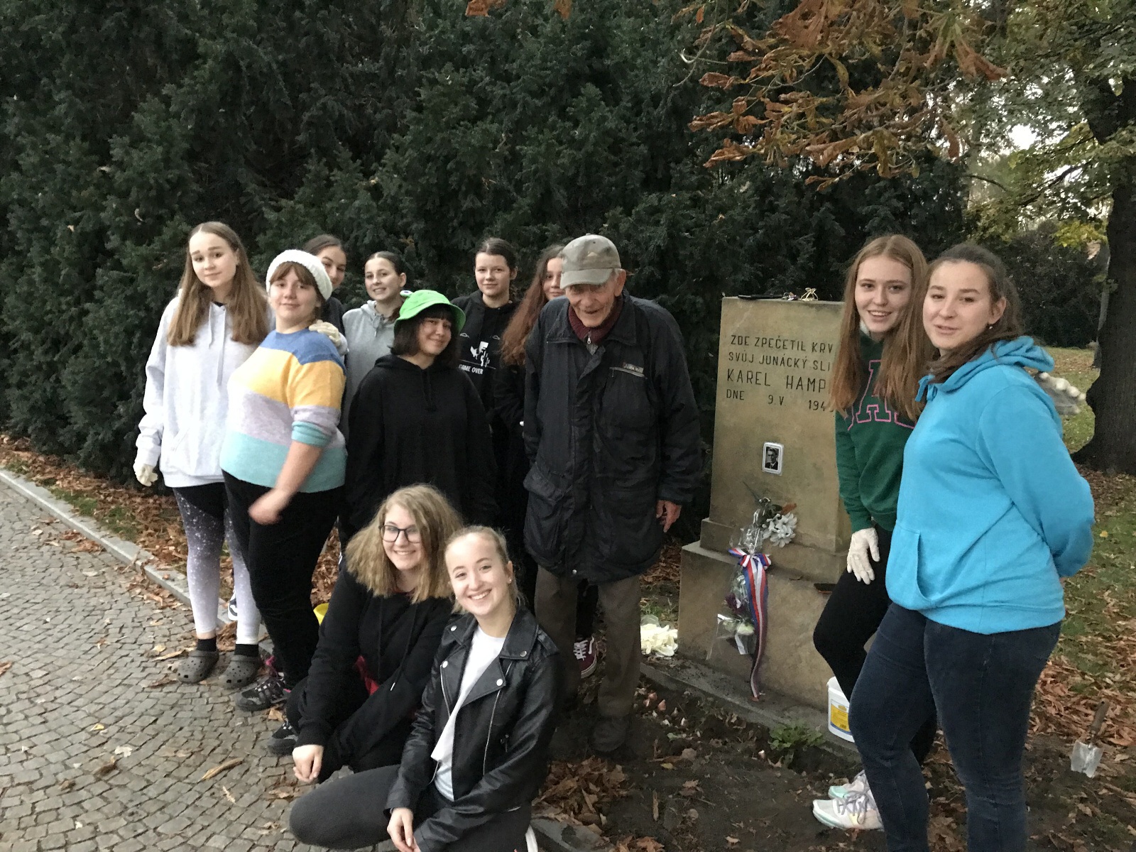 Během práce kolem nás prošli i dva pamětníci, kteří se s paní učitelkou dali do řeči, protože pana Hampla znali osobně.