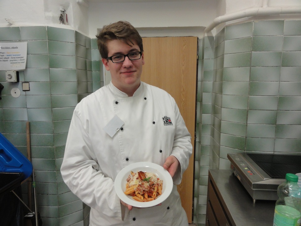 Třídenní kuchařský maraton začal ve čtvrtek 5. 2. 2015 ve stylu italské kuchyně. Dozvěděli jsme se, jak připravit pravou italskou polévku minestrone, spaghetti carbonara a jak správně uvařit těstoviny. Výsledné pokrmy jsme i ochutnali. Sladkou tečkou na závěr byl vynikající italský desert tiramisu. Dle prázdných talířů a pochval si myslím, že právě pokrmy ze slunné Itálie nám všem chutnaly nejvíce.