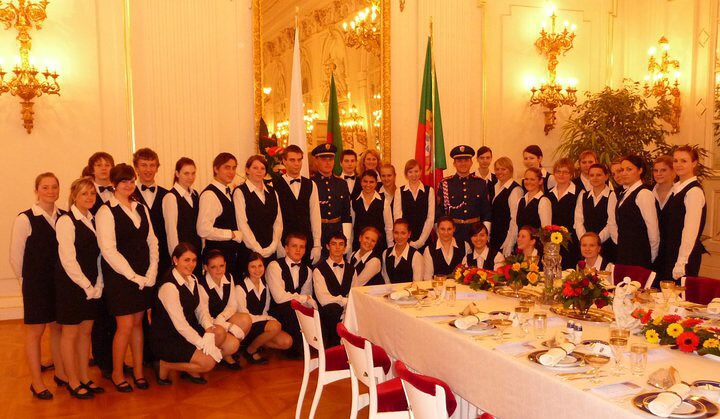 Přes 40 studentů naší prestižní hotelové školy vyrazilo ve čtvrtek 15. dubna 2010 na Pražský hrad, kde jsme obsluhovali pana prezidenta Václava Klause s chotí Livií a prezidenta Portugalské republiky Aníbala Cavaco Silvu s chotí Marií. Slavnostní večeře se podávala v Rudolfově galerii. V menu nechyběla jihočeská kulajda s hříbky nebo kachní prsa.