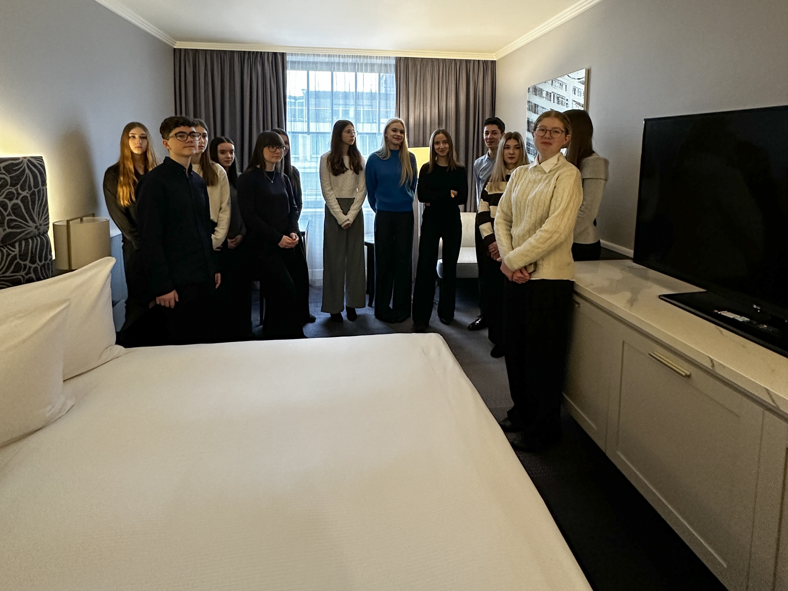 V pátek 6. února 2026 se studenti 1. C Hotelové školy Poděbrady zúčastnili exkurze v hotelech Paříž a Hilton Old Town. Během návštěvy jsme měli možnost nahlédnout do zákulisí hotelového provozu a lépe poznat, jak fungují jednotlivé úseky těchto prestižních hotelů.