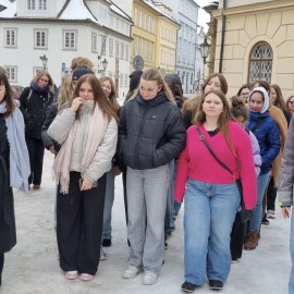 Sraz byl na Masarykově nádraží v Praze, odkud jsme vyrazili k Orloji a počkali si na pochod apoštolů. Poté jsme se vydali ke Karlovu mostu, kde si nás přebral pan průvodce Nebeský. Hned na začátku jsme se rozdělili do 5 týmů, které mezi sebou soutěžily. Začali jsme u sochy Karla IV. na Křižovnickém náměstí. Dostávali jsme otázky, za jejichž odpovědi jsme získávali dukáty jako body. Přesouvali jsme se po Karlově mostě, až jsme došli ke Kampě. Tam jsme dostali papíry s otázkami, mapu a vydali se hledat odpovědi. Když jsme se dostali do cíle, pan průvodce prověřil naše nově nabyté vědomosti, spočítali jsme si dukáty a vyhodnotili jsme týmy. Dostali jsme odměnu v podobě balíčků Mentosek. Poté jsme jako třída šli k obchodnímu centru Paládium, kde jsme se rozloučili a jeli domů.