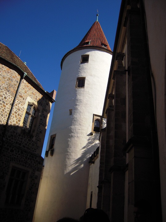 Jelikož už se den blížil ke konci, na nic jsme nečekali a následovali slečnu průvodkyni a bystře poslouchali její záživný výklad zejména o Karlovi IV., jeho dětství, manželkách, sídlech Lucemburků a poté o samotném hradu, který jsme křížem krážem prošli. Jednou z největších atrakcí byla replika korunovačních klenotů, které od originálu pozná jen odborník.