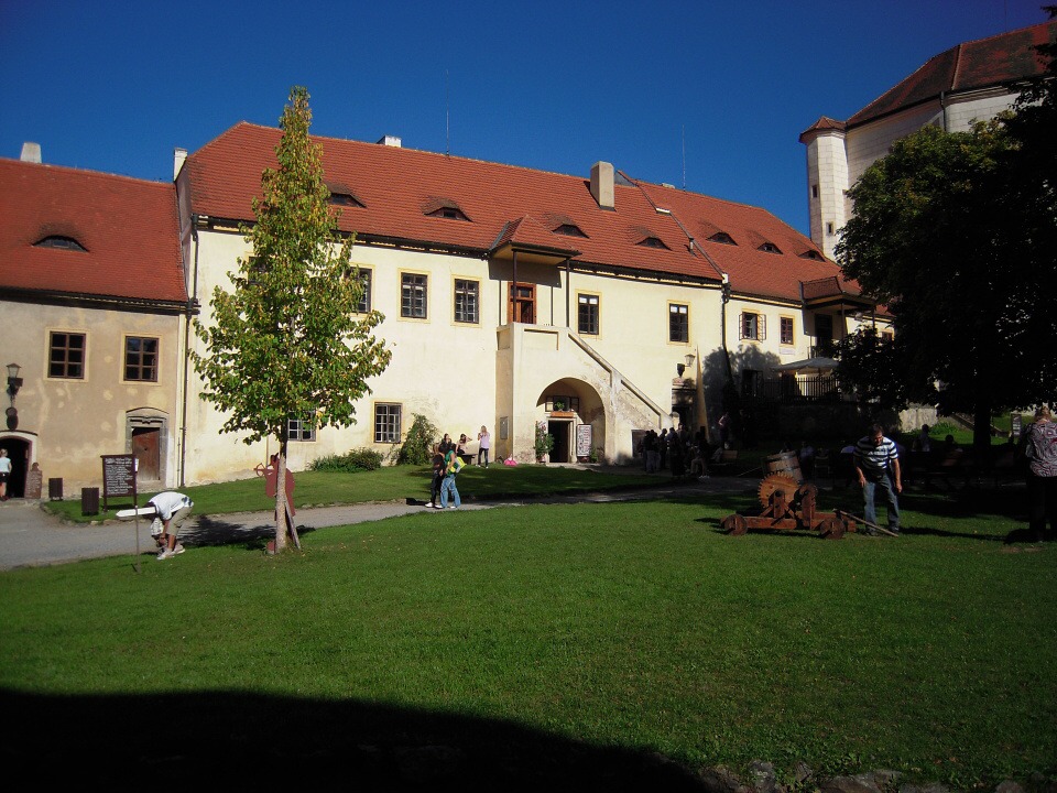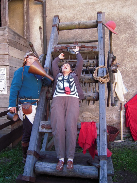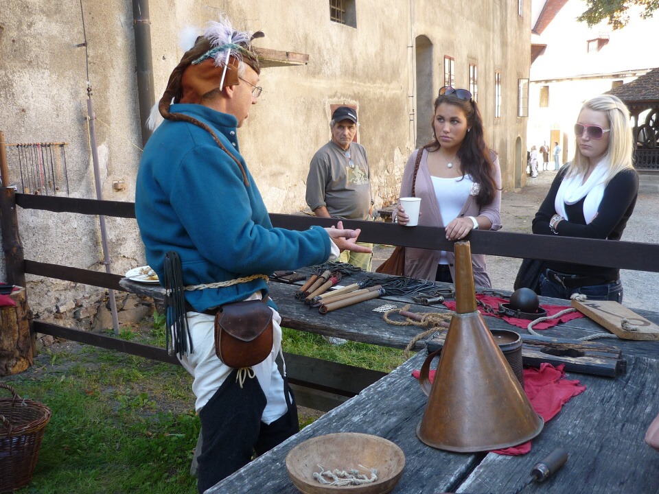 Naší první cílovou destinací byl hrad Křivoklát, kde pro nás byl přichystán bohatý program. Aby byla „dobovost“ úplná, každé skupině bylo přiděleno jméno některého z vládnoucích rodů. My jsme byli Habsburkové a jako první jsme si mohli prohlédnout hrad s paní průvodkyní, jež nám přiblížila nejen jeho historii, ale ukázala i tehdejší vězení a hladomornu, která kdyby byla v dnešní době alespoň z půlky tak drsná jako byla dříve, kriminalita by jistě klesla rychlostí světla.