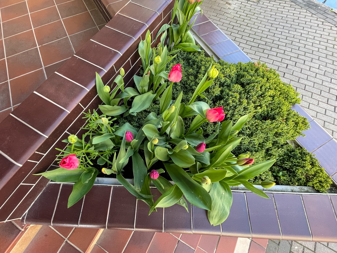 Zasadili jsme spoustu tulipánů, aby to v okolí naší školy bylo o něco barevnější. Se sázením nám pomohla paní učitelka Valentová a pan Novák.
