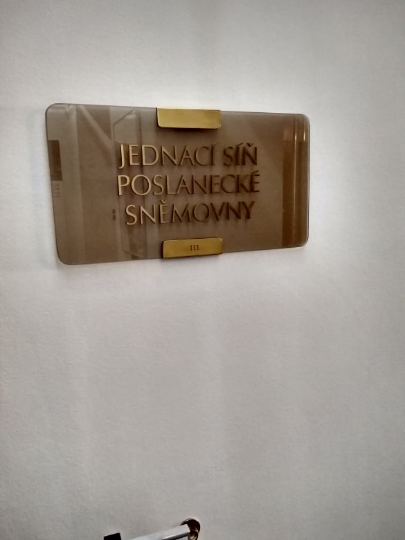 Následně jsme podstoupili bezpečnostní prohlídku a směle se vydali skrz budovu, která je opravdovým bludištěm. Cestou jsme minuli například slavnostní vchod s obrazy bývalých předsedů Poslanecké sněmovny, přípravu na zahájení volební kampaně nebo přímo předsedu Poslanecké sněmovny Radka Vondráčka.
