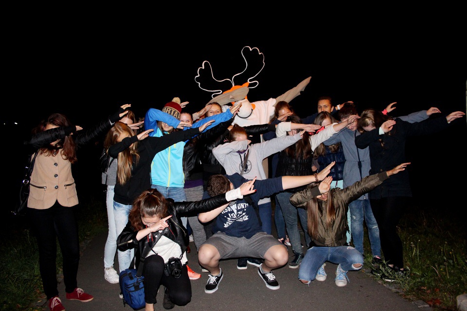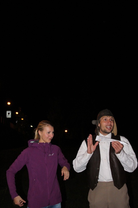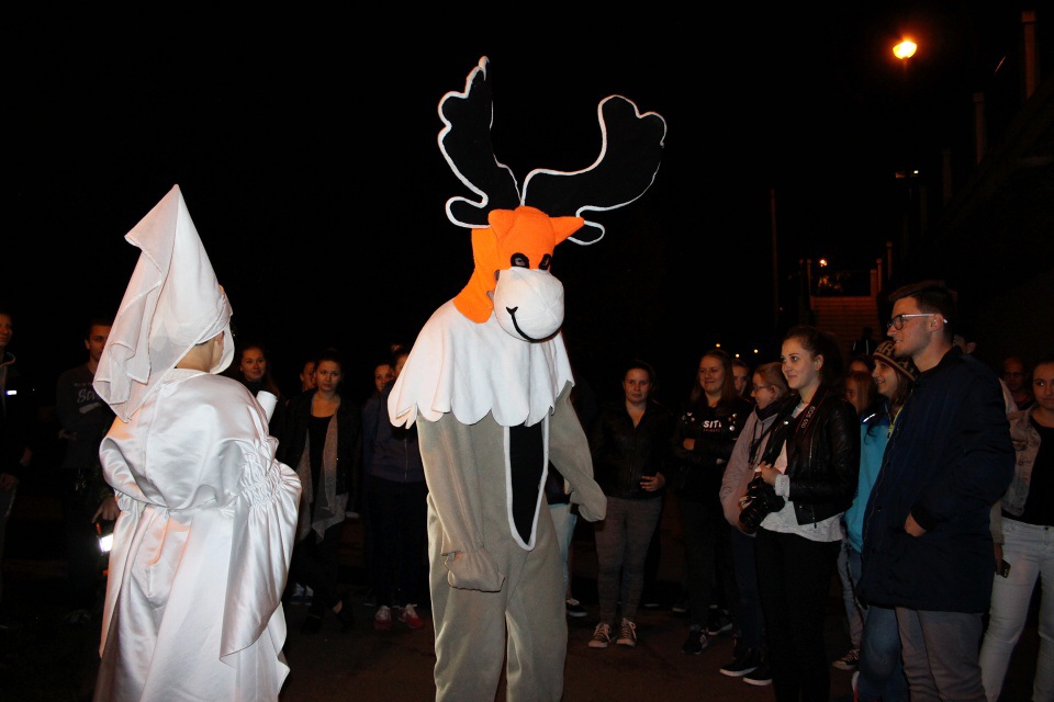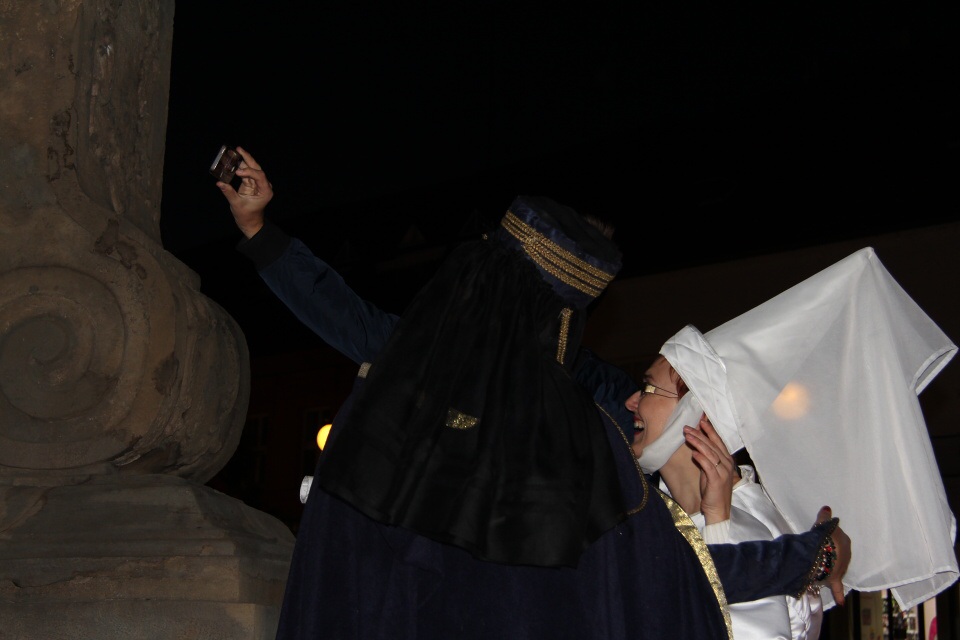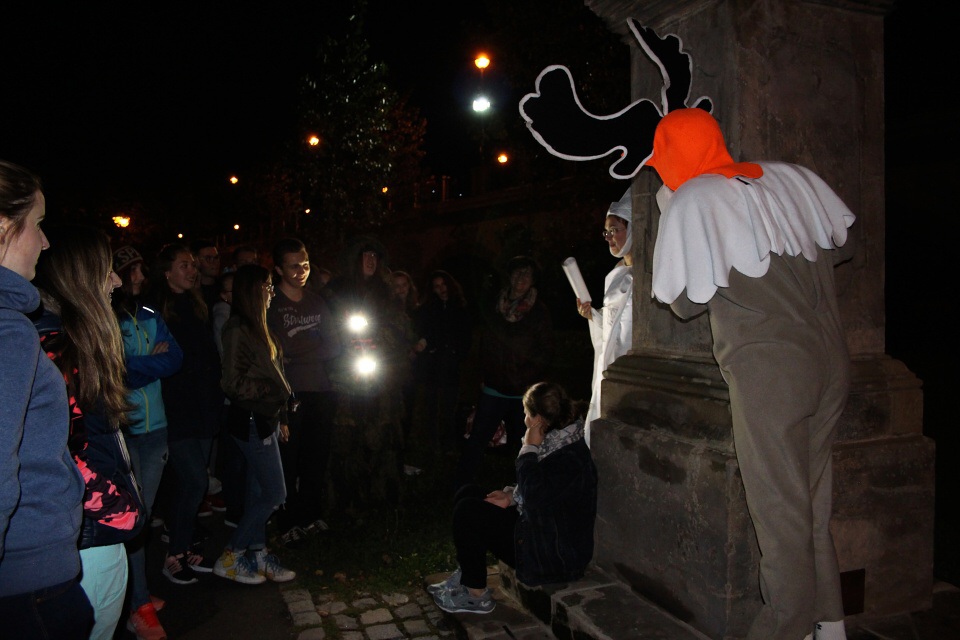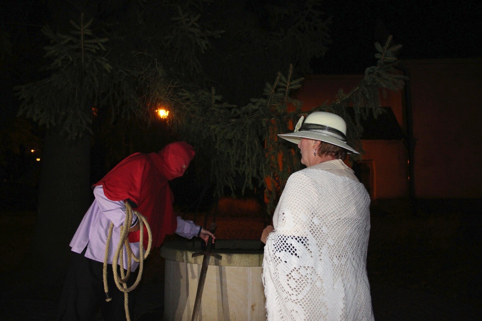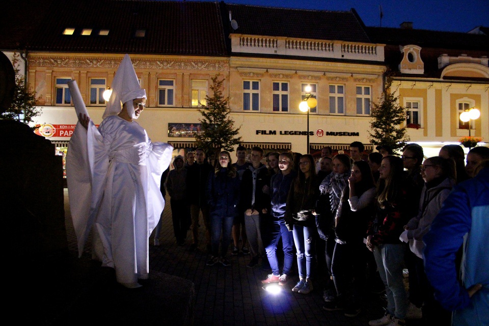Dne 12. 10. 2016 se ve městě Poděbrady zjevila Bílá paní a odvedla si partu studentů z Domova mládeže. Mělo to ale svůj důvod. Byla to totiž průvodkyně naší kostýmové prohlídky z místního ochotnického spolku Jiří. Tentokrát nás Bílá paní vedla k Havířskému kostelíku, kde na nás čekalo několik historických postav, aby nám vypověděly své příběhy. Například od kata jsme se dozvěděli o popravě kutnohorských havířů. Získali jsme spoustu nových informací z historie města Poděbrady a to díky skvělému divadelnímu ztvárnění spolku Jiří.