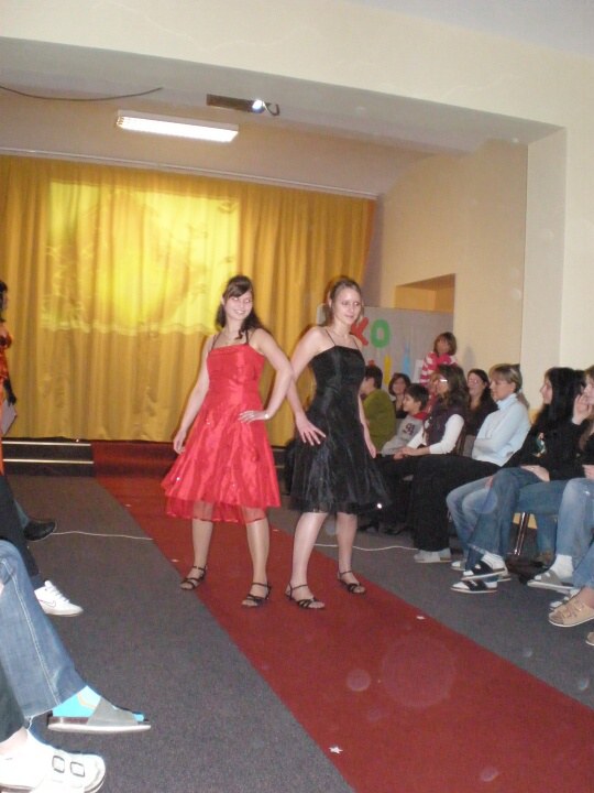 Přehlídka začínala předváděním plesových šatů, poté vystoupil Lukáš ze skupiny Irish Demonics se světelnou show. Po něm pokračovaly dívky,které nyní předváděly koktejlové šaty. Přehlídka společenských šatů byla ukončena nástupem s naším jediným pánským modelem Honzou Krčmaříkem v bílém saku. Když dívky odešly, nastoupily dvě z organizátorek přehlídky a zazpívaly písničku It Is You z filmu Shrek.