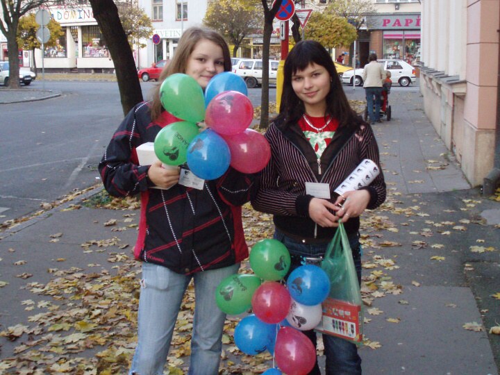 Ve středu 5. 11. 08 v odpoledních hodinách se domov mládeže naší školy už druhý rok zúčastnil prodávání propisovacích tužek na podporu preventivního a humanitárního projektu Šance. Tentokráte vyrazilo do ulic 11 dvojic. Tužky prodávaly hlavně studentky z prvních ročníků a myslím, že si se vším skvěle poradily. Přestože ostatní školy chodily s tužkami po Poděbradech už od rána, naše holky bez problémů prodaly téměř vše. Někteří nám dali i víc, než byla určená cena propisek. Našemu úspěchu také přispělo to, že s každou tužkou jsme dávali i malý balónek a z toho měly hlavně děti velkou radost.