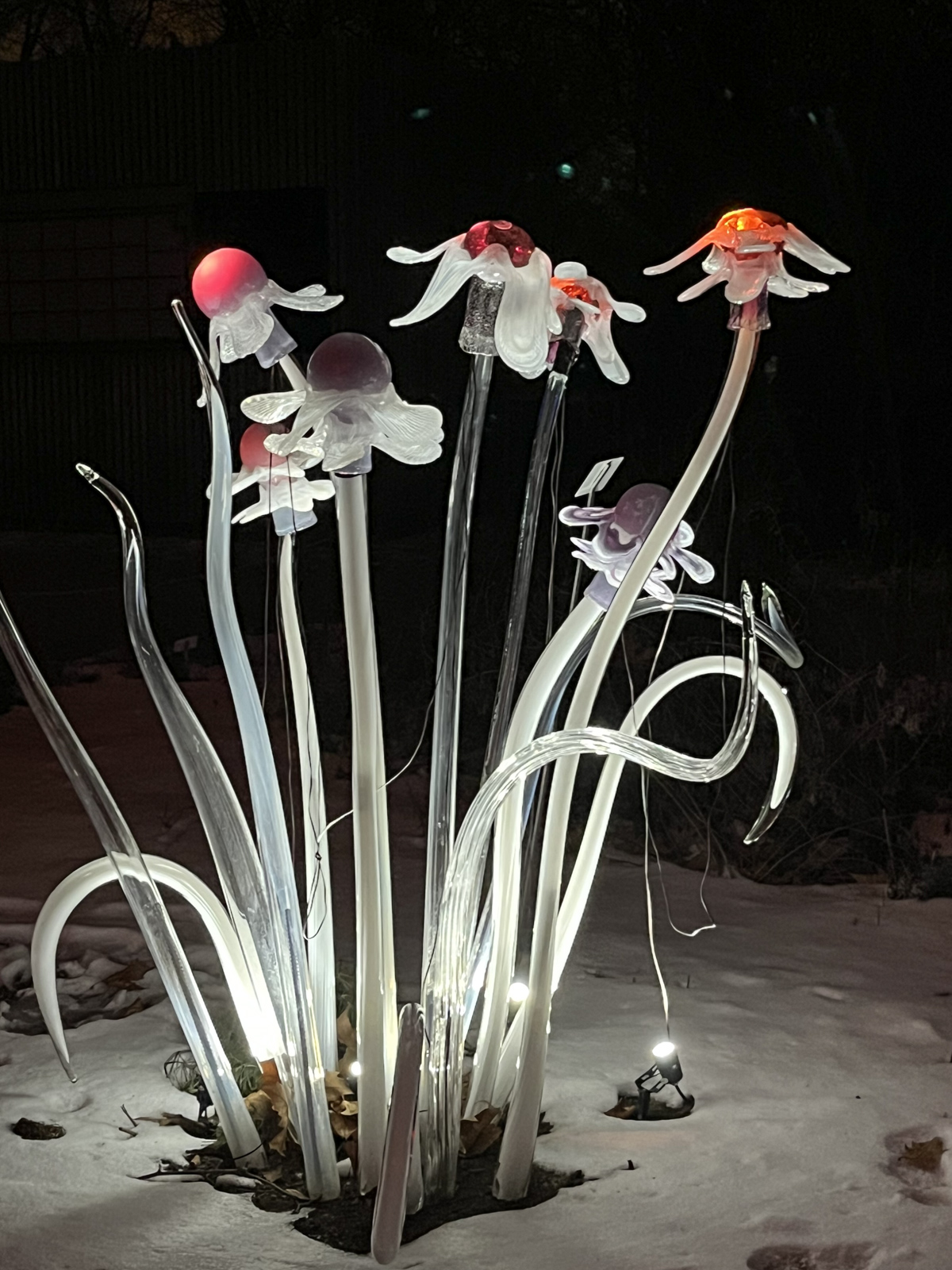 Dne 22. 1. 2026 jsme se vydali do pražské botanické zahrady na výstavu s názvem Křišťálová zahrada. Na výstavišti jsme mohli vidět jak živé rostliny, tak i skleněné exponáty, které byly krásně osvětlené různými barvami. Barevná světla vytvářela zajímavou atmosféru a celá zahrada díky nim působila kouzelně. I když byla venku zima, prohlídku jsme si užili a dlouho jsme se zastavovali u jednotlivých exponátů.