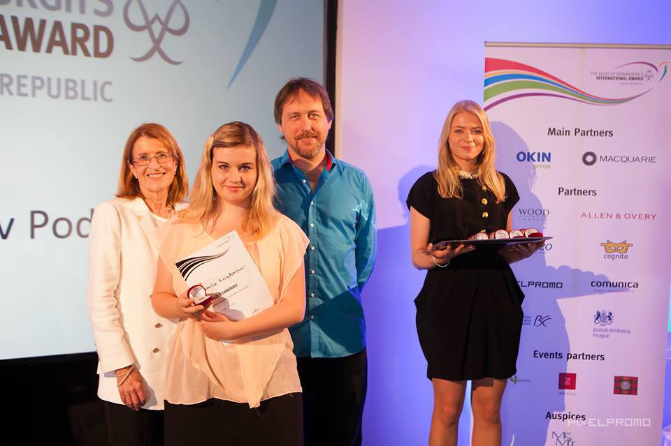 Moje cesta za bronzovou cenou započala v září 2013, když paní Šimáková s paní Procházkovou obcházely třídy a prezentovaly nám program Cena vévody z Edinburghu. A já si řekla proč to nezkusit, odejít mohu vždy. První schůzka mě zaujala na tolik, že jsem si řekla, že musím zkusit dokončit alespoň bronzovou úroveň. V programu jsem musela splnit čtyři sekce: dobrovolnictví, sportovní aktivitu, dovednost a expedici. Za pomoci koordinátorek jsem si jako dobrovolnictví vybrala docházení do domova pro seniory Luxor v Poděbradech, kde jsem každý pátek trávila s jednou paní, se kterou jsem si povídala a trávila s ní odpoledne. Jako sportovní aktivitu jsem měla dívčí fotbal a jako dovednost pletení. Upletla jsem šálu, kterou jsem dala mé mamince k Vánocům. Na expedici jsem jela s dalšími účastníky programu. Naše expedice se odehrávala v okolí Českého Krumlova a my jsme sjížděli Vltavu.