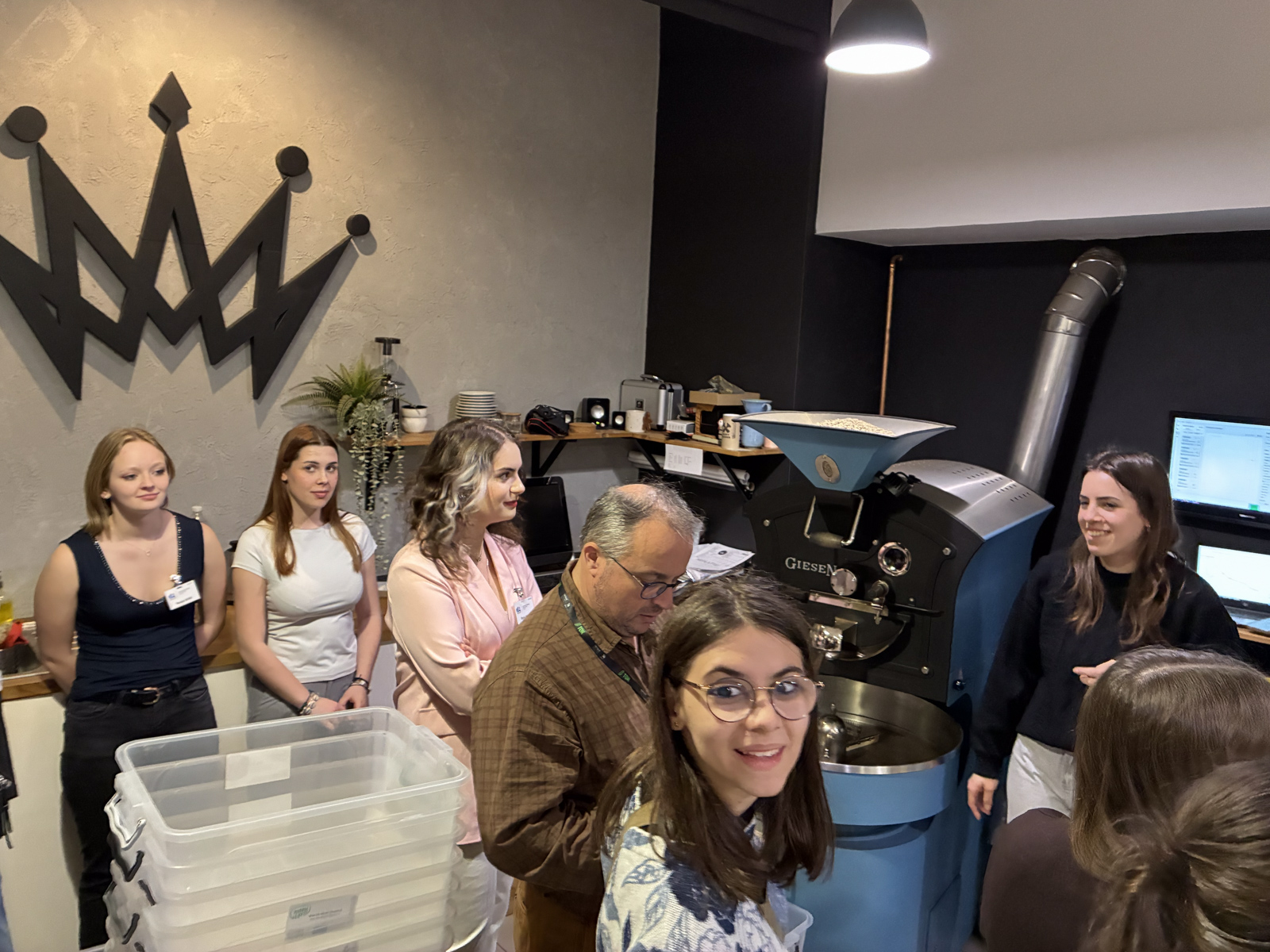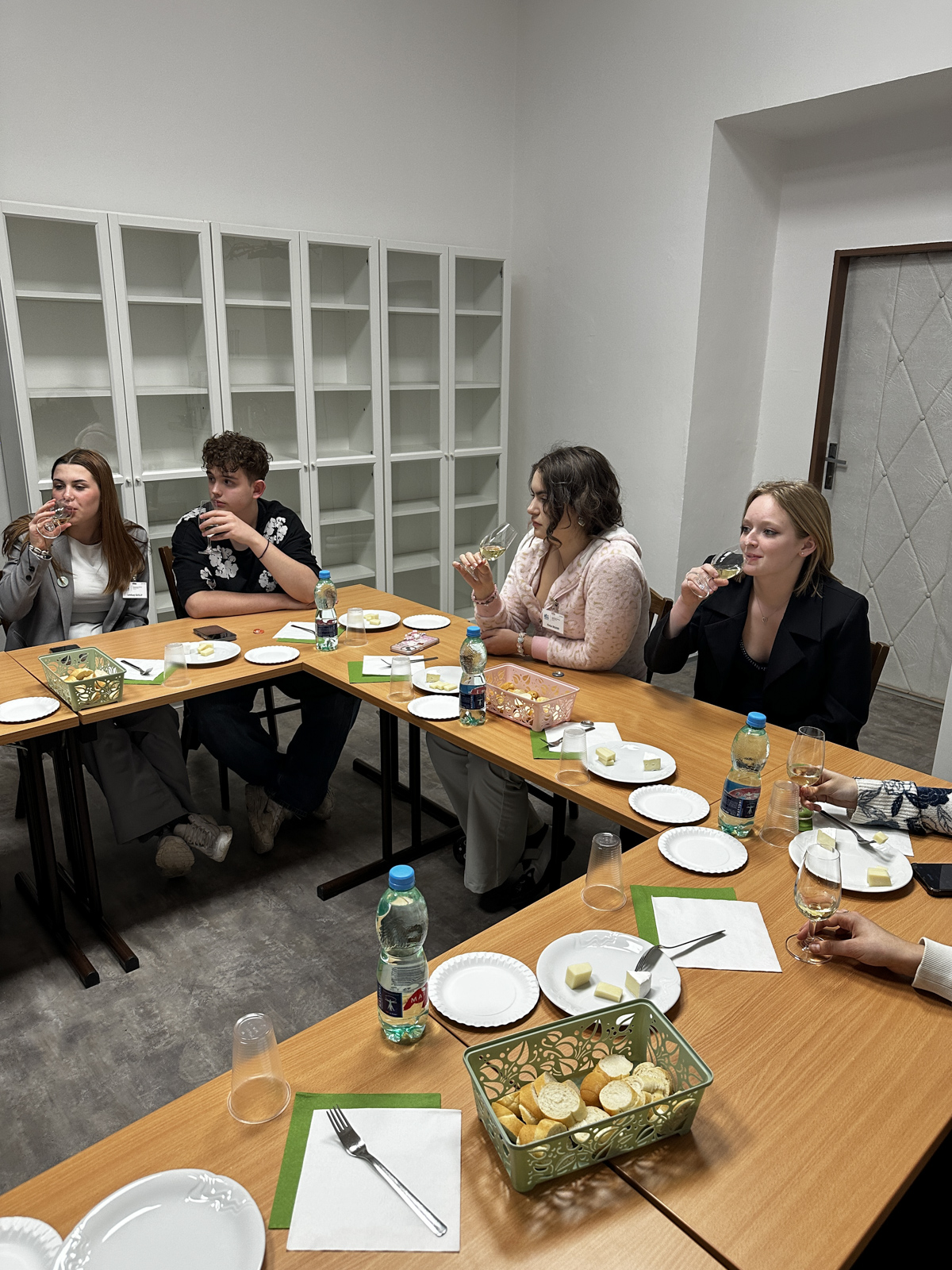 Pondělí byl velmi nabitý den. Ráno jsme zahájili oficiální přivítání studentů prohlídkou Poděbrad. Ukázali jsme jim Obereignerovu vilu, lázně, květinové hodiny, kolonádu, Jiřího náměstí a zámek. Následovala návštěva skláren Crystal Bohemia, kde si na konci prohlídky mohli všichni vyzkoušet ruční broušení skla. Odpoledne jsme pak s našimi hosty zamířili do pražírny Amáres, kde nám bylo předvedeno a vysvětleno pražení kávy. Byl pro ně připraven program i na večer, během kterého degustovali česká vína a ochutnávali české sýry.