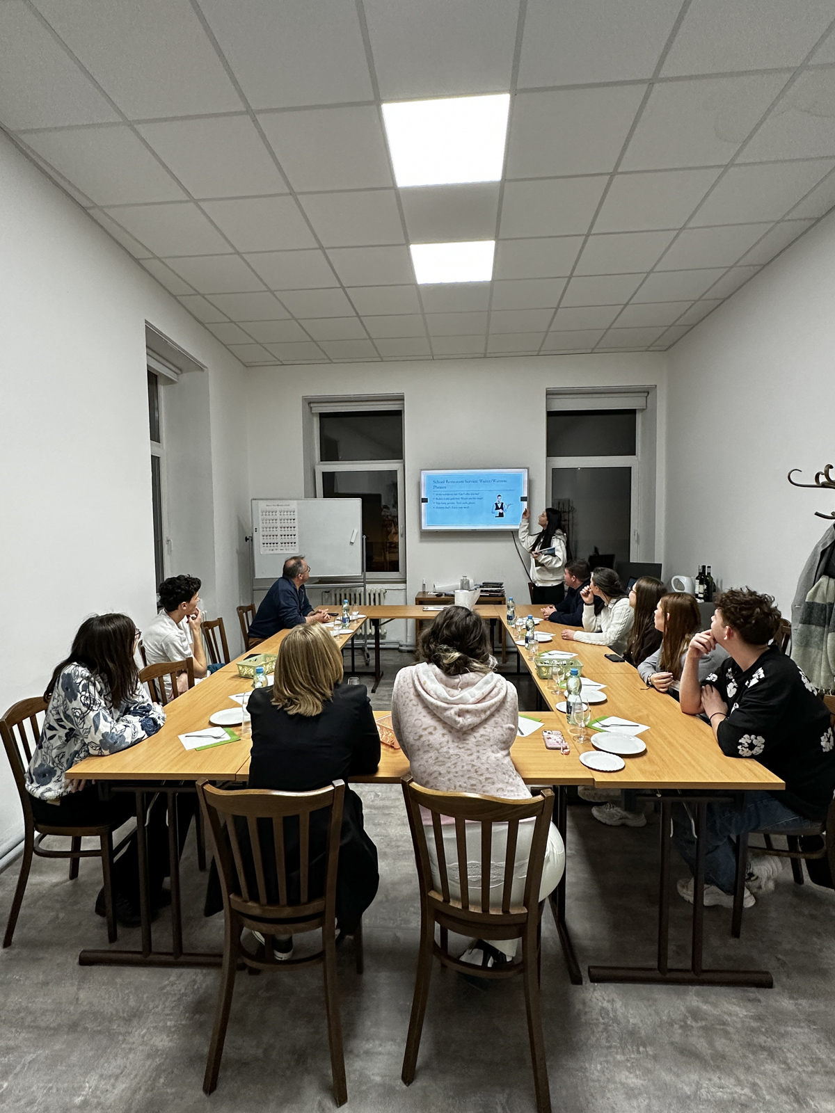 Následující den jsme studenty provedli naší Hotelovou školou Poděbrady. Bohužel kvůli rekonstrukci kuchyní jsme jim nemohli přiblížit průběh vaření nebo banketu. Potom jsme se připojili do výuky francouzského jazyka. Studenti 2. ročníku tak měli možnost popovídat si s rodilými mluvčími. V 10 hodin nám začala obsluha a vaření ve školní restauraci Junior. Rozdělili jsme se na dvě poloviny, jedna šla do kuchyně a druhá na obsluhu. Odpoledne čekal studenty z Francie výlet na farmu Košík, ze kterého se vrátili nadšení.