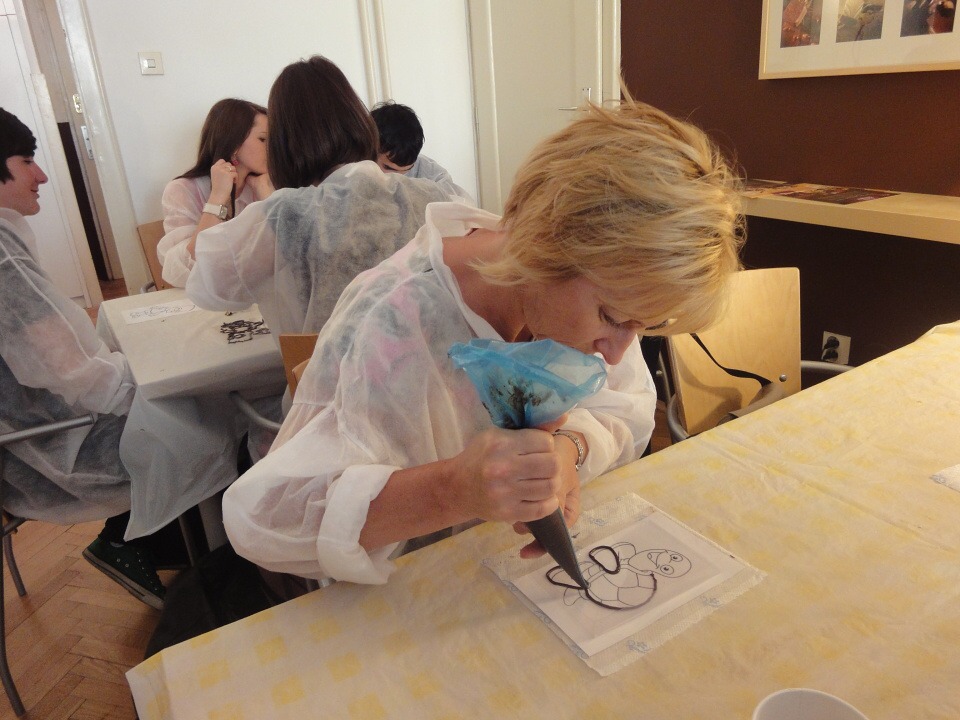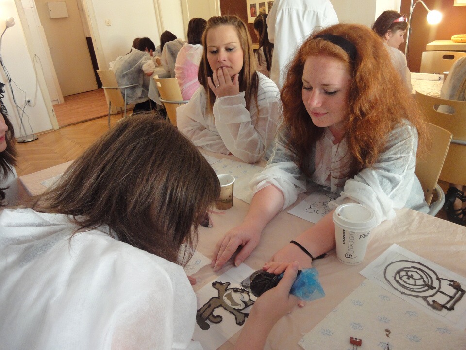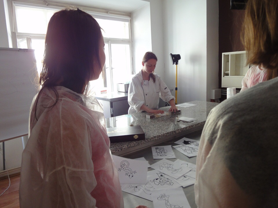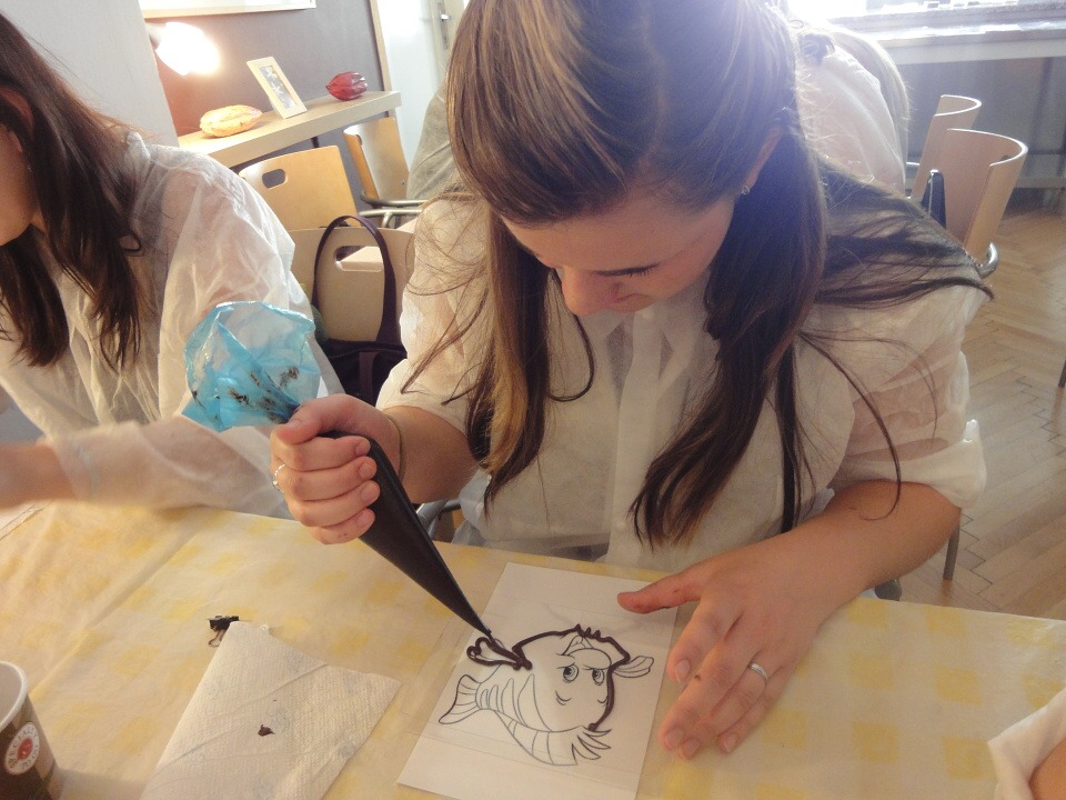 První část našeho projektu nás zavedla do pražského muzea čokolády Choco Story, kde jsme se o této báječné pochoutce dozvěděli spoustu nových zajímavých informací – o jejím původu, používání v různých oborech, způsobech podávání a zpracování a také o tom, jak se dostala do Evropy. Po prohlídce muzea jsme si vyzkoušeli jednu z činností čokolatiérů, práci s čokoládovými polevami. Sami jsme si čokoládou namalovali vlastní pochoutku podle šablon.