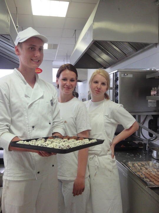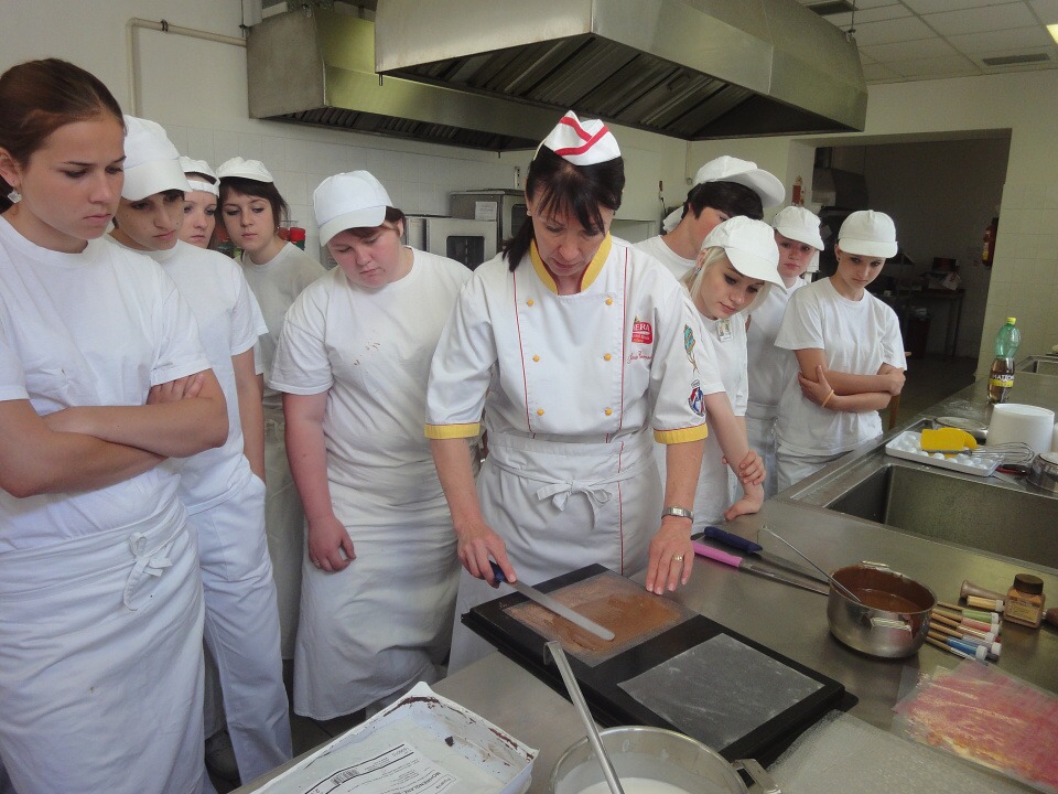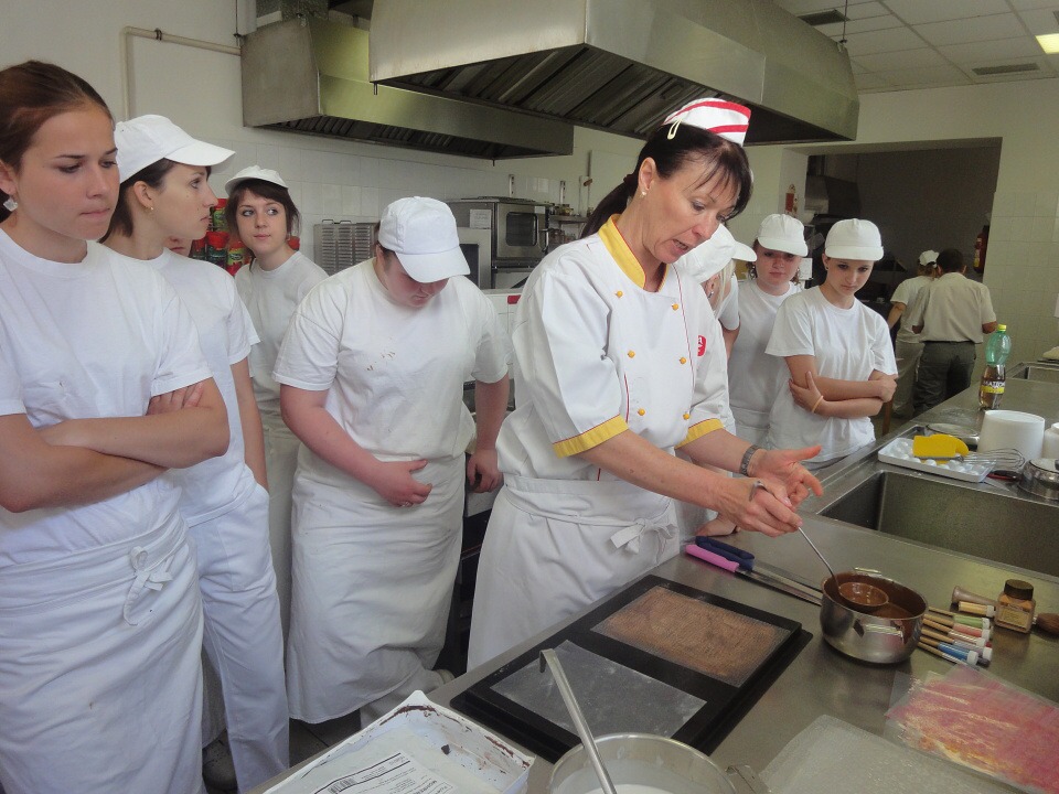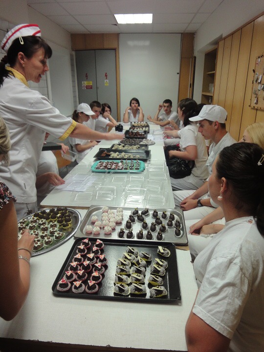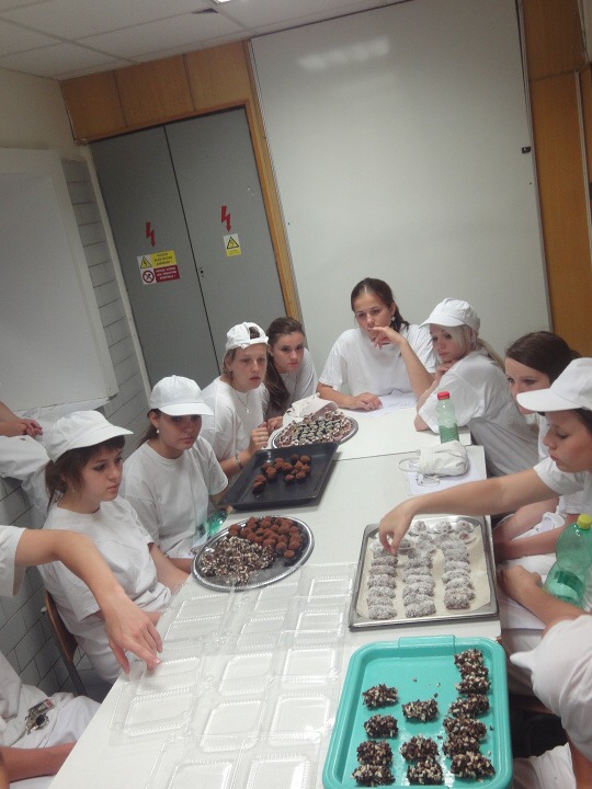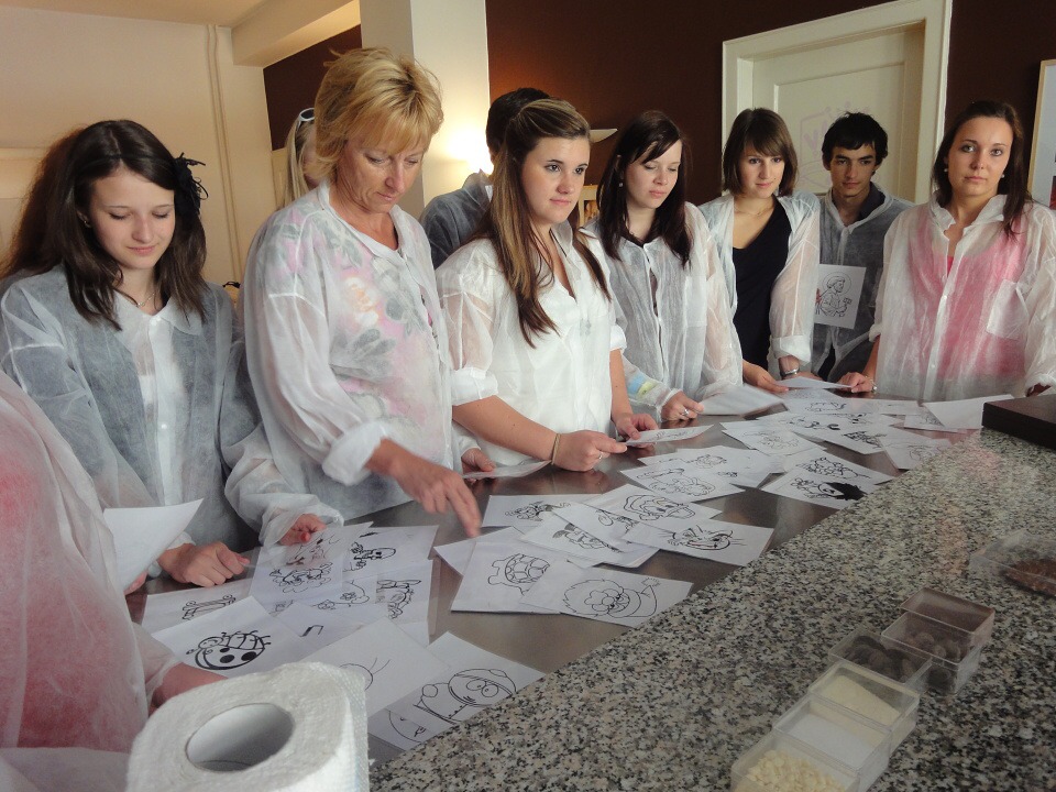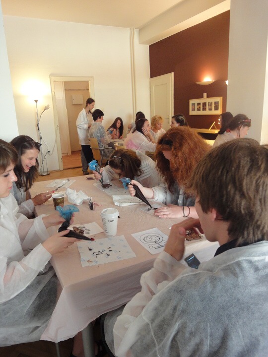 Druhá část projektu se ubírala čistě výrobně-konzumním směrem… Pod dohledem pravé odbornice ve svém oboru paní mistryně cukrářky Pavlíny Berzsiové jsme se učili tvořit čokoládové bonbónky. Vyráběli jsme pralinky všech tvarů a chutí. O většině z nich se nám do té doby mohlo jen zdát… a i když jsme byli fyzicky plně přítomni, někdo se mohl cítit jako ve snu :-)