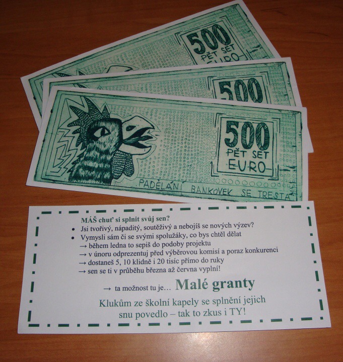 Celou situaci musela objasnit až paní učitelka Soukalová – všichni přítomní žáci se tak poprvé dozvěděli o projektu MALÉ GRANTY, který se od onoho okamžiku na Hotelové škole v Poděbradech „rozjel“.
