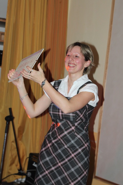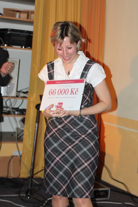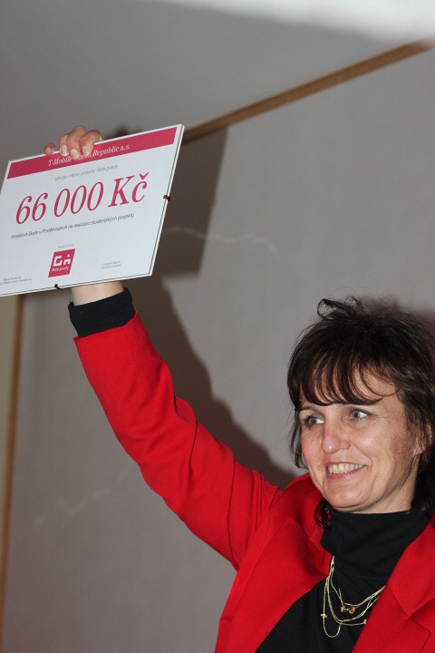 Manažerka projektu Malé granty Irena Fričová alias pyrotechnička :-) pak oficiálně předala naší škole šek na 66 000,- Kč a popřála všem žákům hodně úspěchů, dobrých nápadů a zábavy při tvorbě vlastních projektů.