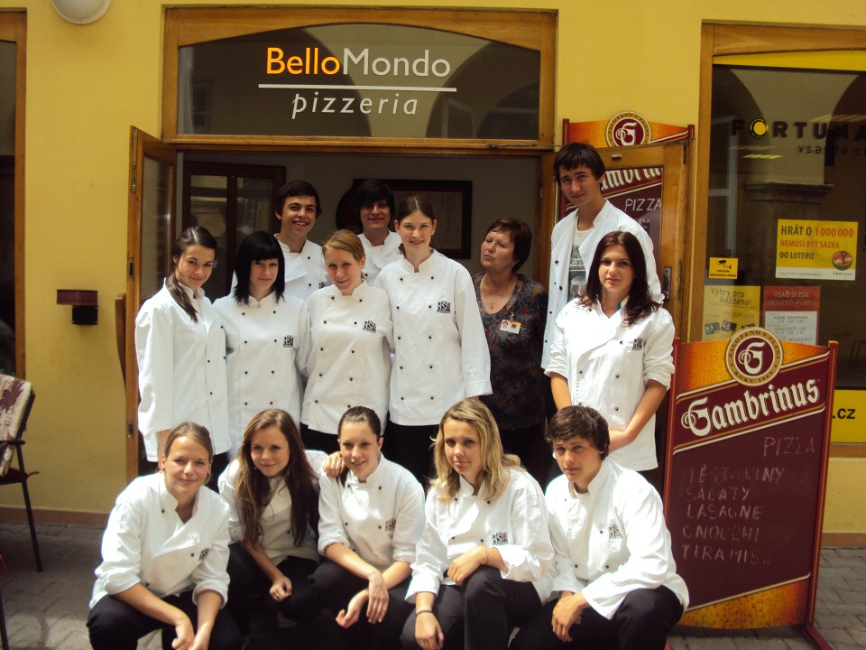 Dne 14. 6. 2011 jsme se třídou vyrazili do poděbradské pizzerie Bello Mondo, kde jsme si vyzkoušeli přípravu pizzy. V tu dobu tam bylo málo hostů, a proto se nám italský kuchař společně se svou pomocnicí mohli plně věnovat. Všichni jsme si z velké nabídky vybrali a následně udělali svou pizzu. Každý, kdo si šel udělat svou pizzu, si nasadil kuchařskou čepici, červený šátek a mohl začít.