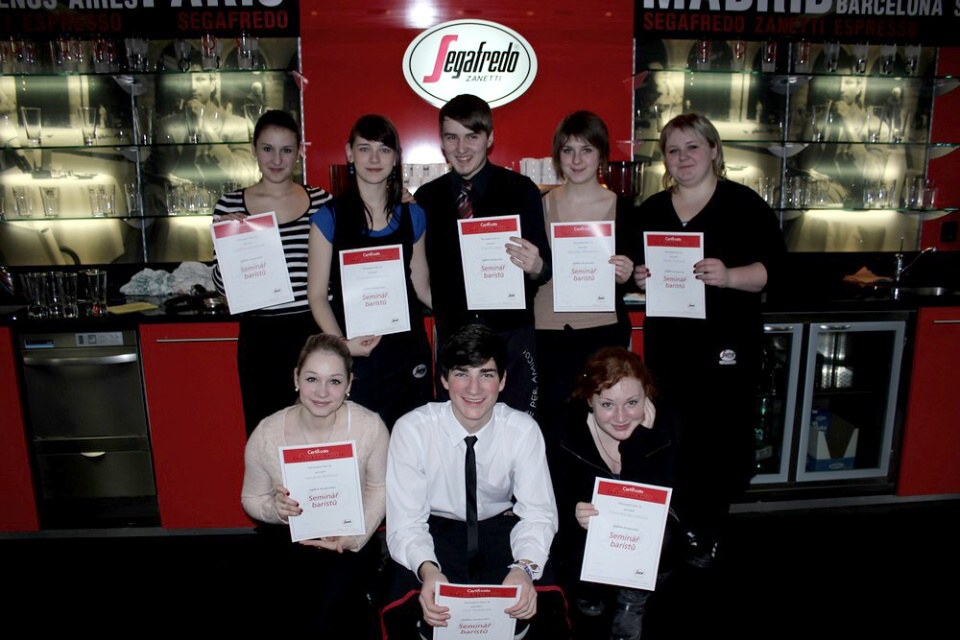 Dne 22. 2. 2012 se žáci naší třídy vydali do Prahy, přímo do firmy Segafredo Zanetti CR s. r. o., kde probíhal jednodenní baristický seminář. Hned na uvítanou nám bylo nabídnuto vynikající cappuccino. Poté následovala teoretická část semináře, kde jsme se dozvěděli spoustu nových a zajímavých informací o kávě a pěstování kávovníků. Po teoretickém úvodu se nás ujal skvělý barista, pan Splavec, který nám vysvětlil, jak správě připravit espresso, cappuccino nebo také latte machiato. Někteří z nás chvíli bojovali s našleháním mléčné pěny, ale všichni byli vcelku úspěšní. Nakonec jsme se také naučili, jak správě postupovat při čištění kávovaru. Díky této příležitosti jsme změnili názor na to, jak chutná a voní opravdu kvalitní káva a všichni jsme si tento den příjemně užili.