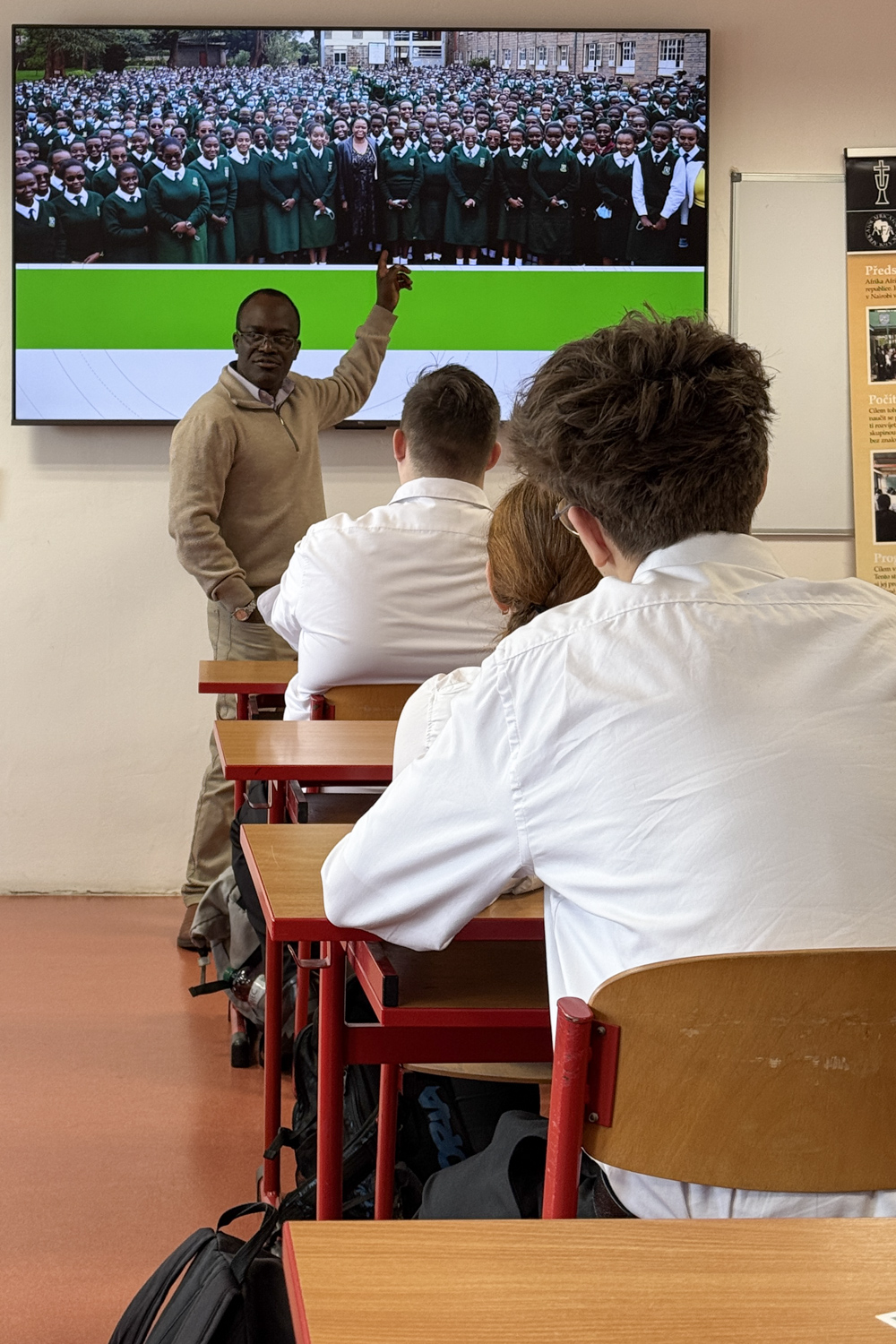 Silnou součástí přednášky byl i životní příběh samotného Phanuela Oswety, který pochází z Keni a šest let také pobýval ve slumu. Sdílel své životní zkušenosti a vyprávěl nám, jak se mu podařilo odejít studovat do České republiky, a jak bylo právě vzdělání klíčové pro jeho další život. Jeho cesta byla inspirací pro všechny přítomné a ukázala, že tvrdá práce a vytrvalost mohou vést k pozitivní změně.