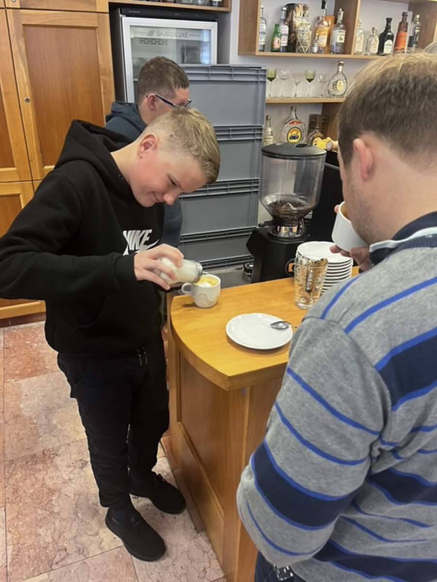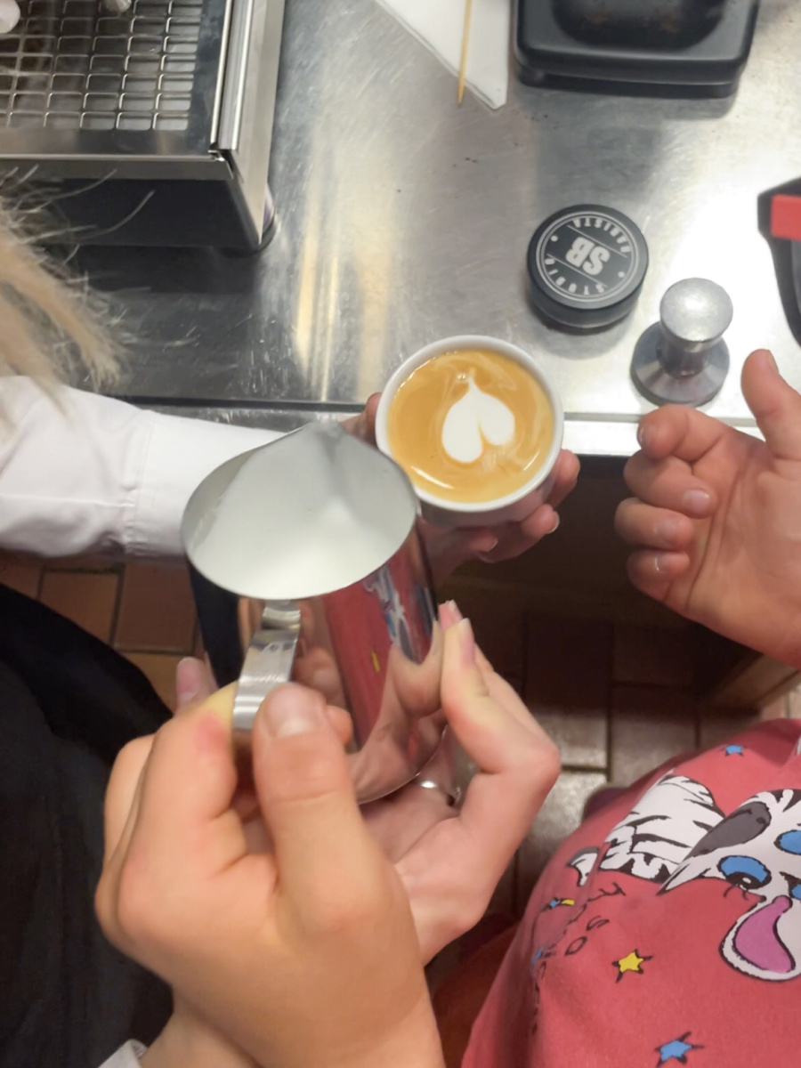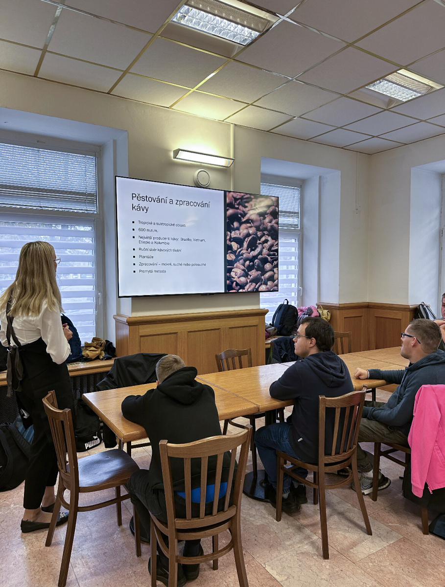 Celý den se nesl ve vůni čerstvě namleté kávy a flambování. Na úvod se děti dozvěděly zajímavosti o původu kávy, o jejích druzích a pražení. Povídání o světě kávy opět vedla zkušená baristka a absolventka baristického kurzu na naší škole. Poté přišla na řadu samotná příprava kávy, nejprve espressa a pak i cappuccina. Samozřejmě nechyběl ani oblíbený latte art.