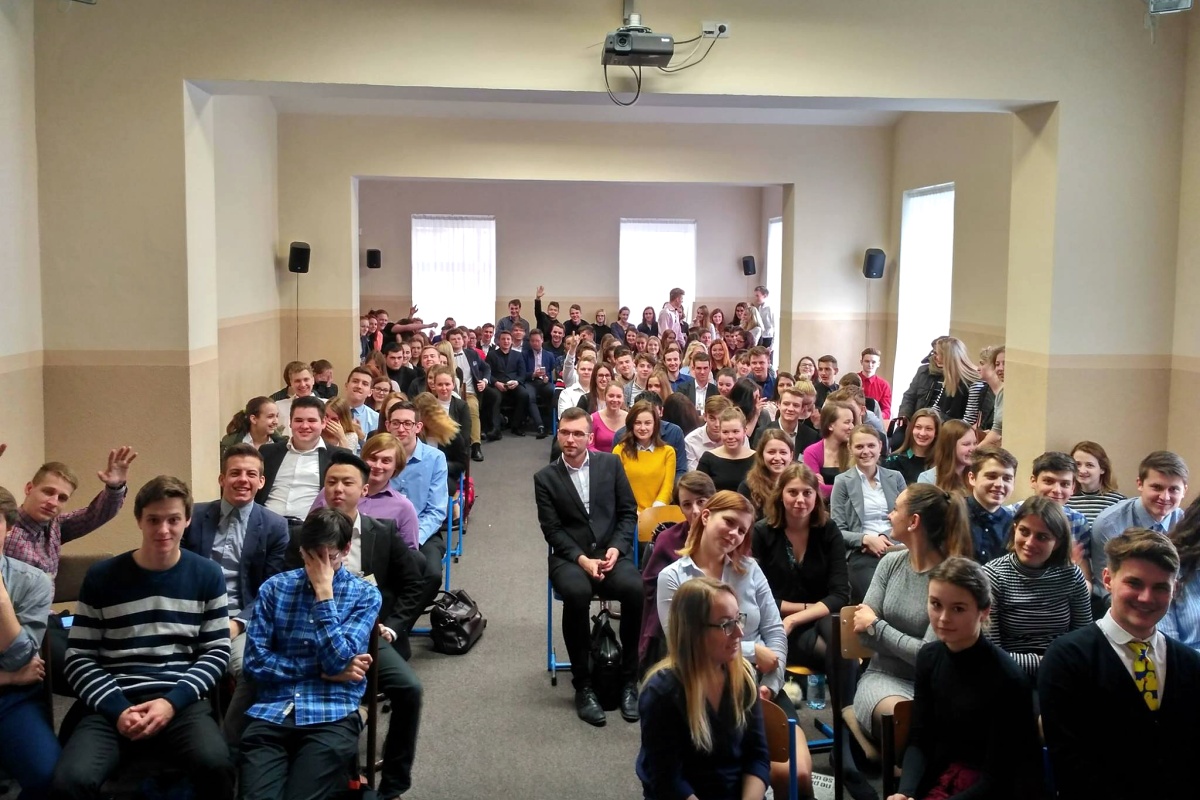 Jsem moc ráda, že jsem na vlastní oči a uši mohla zažít ty dvě přínosné hodiny plné zajímavých informací a podnětů k přemýšlení, které naprosto nepropagovaly opravdu žádnou politickou stranu (!). Pokud něco Dominik propaguje, je to zájem o svět kolem sebe a zájem o to, aby se lidi na tom světě aktivně chtěli podílet a aktivně se starali o věci, které se jich dotýkají. Soustředěná pozornost našeho studentského publika mi dává naději, že by se tento svět mohl posunout směrem k lepšímu…