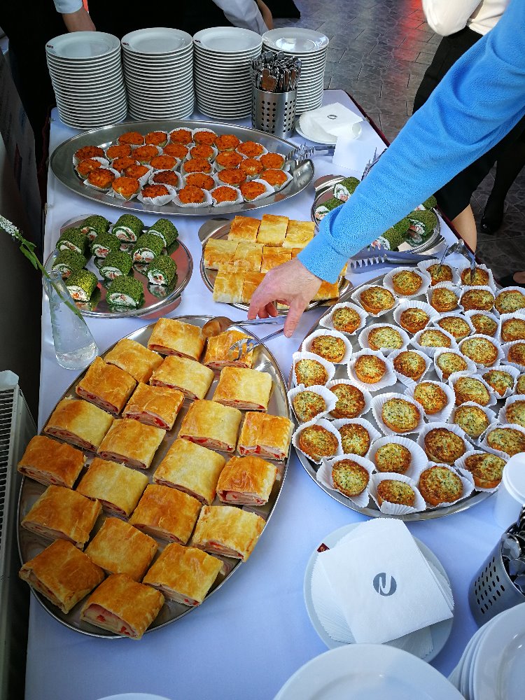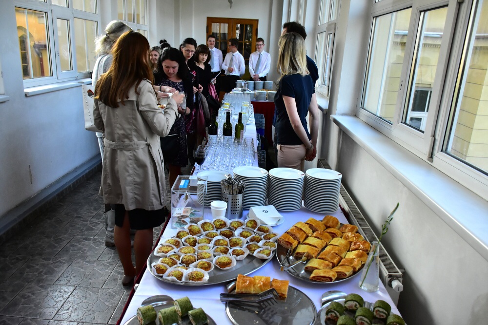 A tak se v odpoledních a večerních hodinách, když už je po výuce a ve školní kuchyni volno, začalo péci a připravovat pohoštění na výše zmíněný koncert. Dobrovolníci z řad studentů prvního ročníku VOŠ a HŠ se opravdu činili a pod vedením paní učitelky Koštýřové vznikla spousta slaných i sladkých dobrot, ze kterých zmíníme alespoň např. špenátovou roládu s lososem, slané muffiny nebo staročeský medovník.