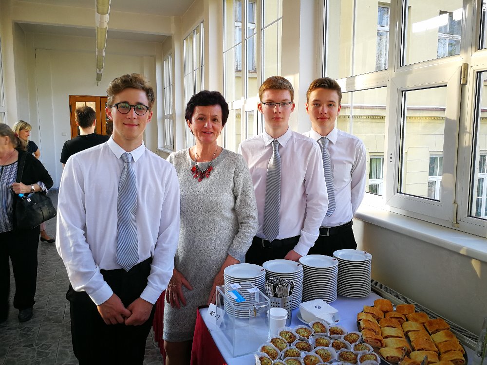 V úterý se potom žáci a žákyně naší školy vydali do Prahy, aby zajistili servis pro návštěvníky koncertu nadace. Ve svém volném čase a bez nároku na mzdu, přesto však ochotně a s úsměvem na rtech hosty obsluhovali Naďa Seidlová z 2. C, Kristýna Krejčová z 2. D, děvčata z 1. B – Jana Csicsayová a Klára Šimonová a trio hochů z 1. A - Vojtěch Cikán, Šimon Svojitka a Adam Špetla až do pozdních večerních hodin. Naši studenti čtvrtého ročníku a nyní již maturanti Tomáš Fišar a Dominik Švec na závěr večera ještě skvěle sekundovali profesionálnímu sommelierovi.