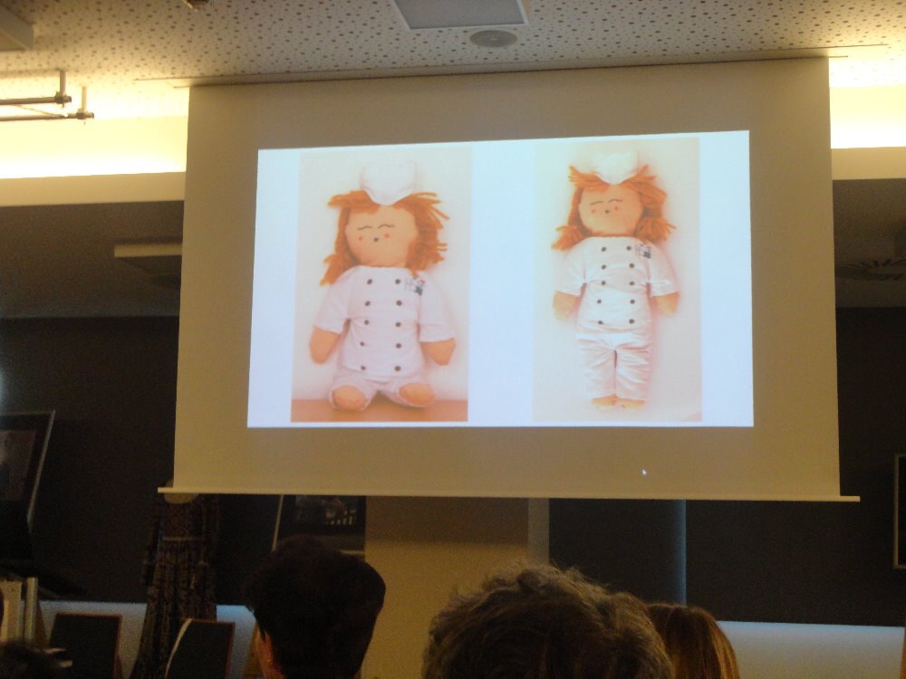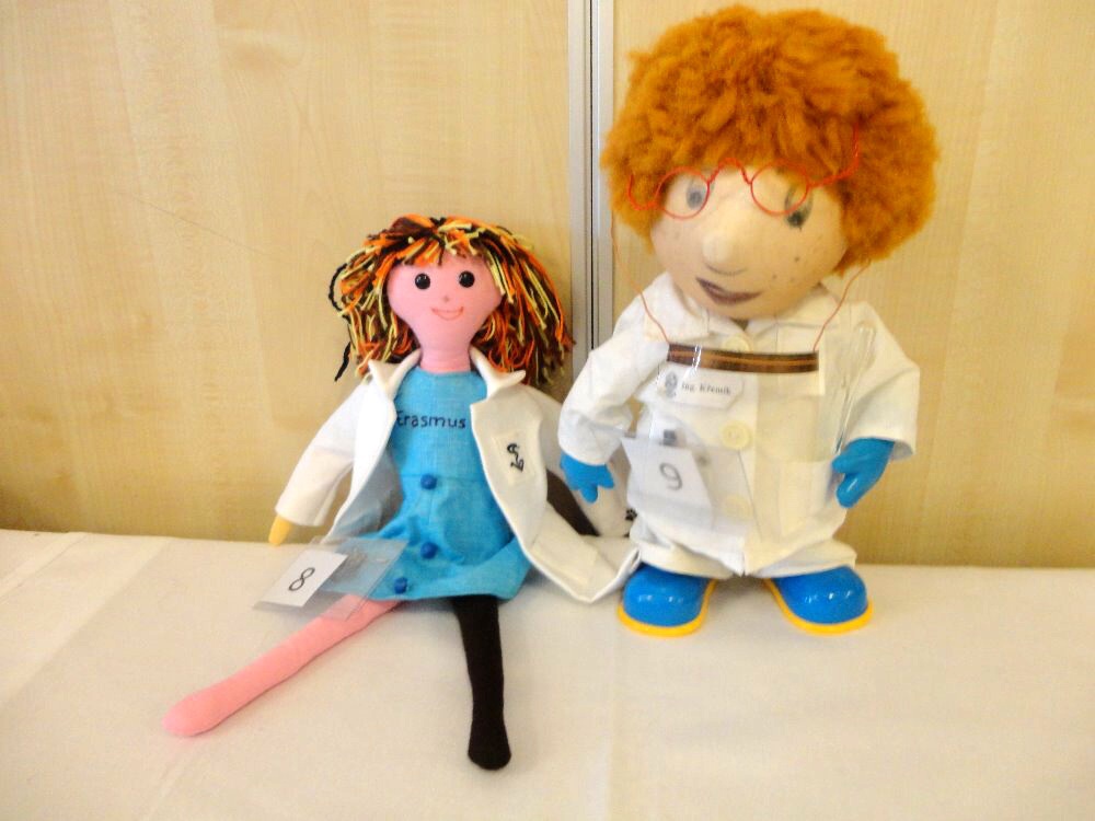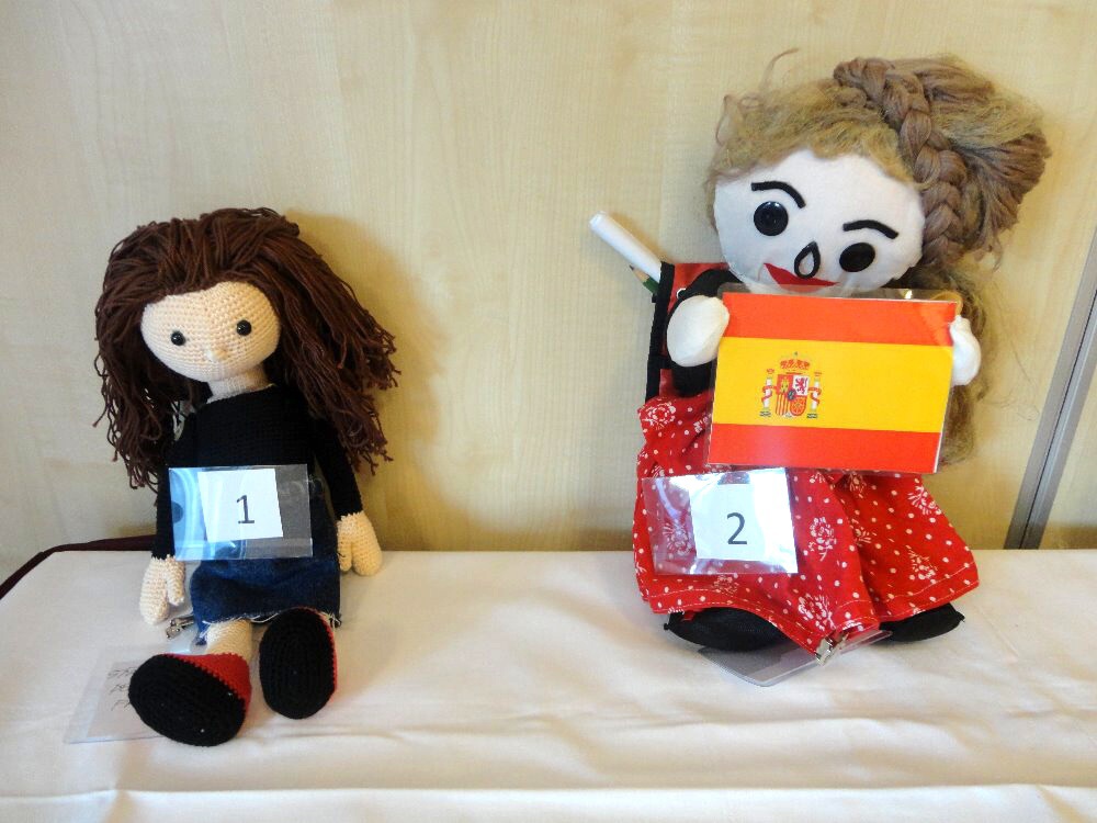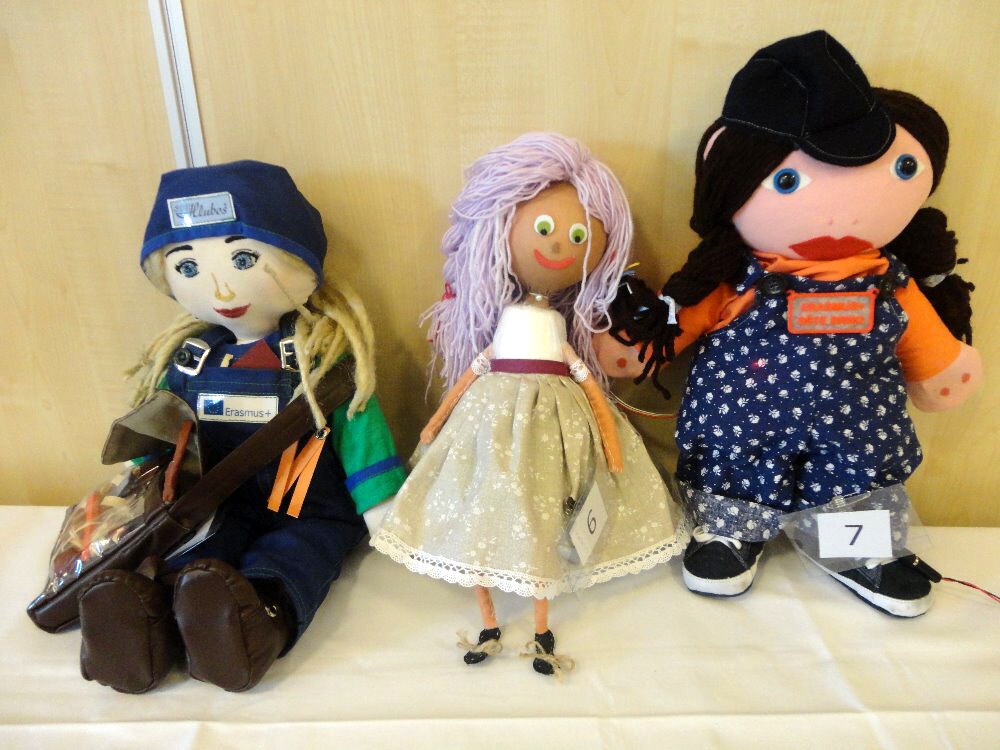 ... toho sice moc nenamluví, na výuku nedochází, ale dres kód naší školy dodržuje. A to tak, že rondon vůbec nesvléká. Asi tuší, že jí to v něm sluší. I ona bydlí na domově mládeže, a to přímo v kanceláři vychovatelů. Ano, tušíte správně, nejmenší hotelovačka patří do skupiny panenek, které pod vedením paní vychovatelky Jany Šimákové vznikají právě na domově mládeže. Ta, která se 14. a 15. listopadu vypravila do Českých Budějovic na výstavu podobných parťáků, dokonce pozdravila účastníky diseminační konference, pořádané u příležitosti 30. výročí programu Erasmus+, z velkoplošné obrazovky.