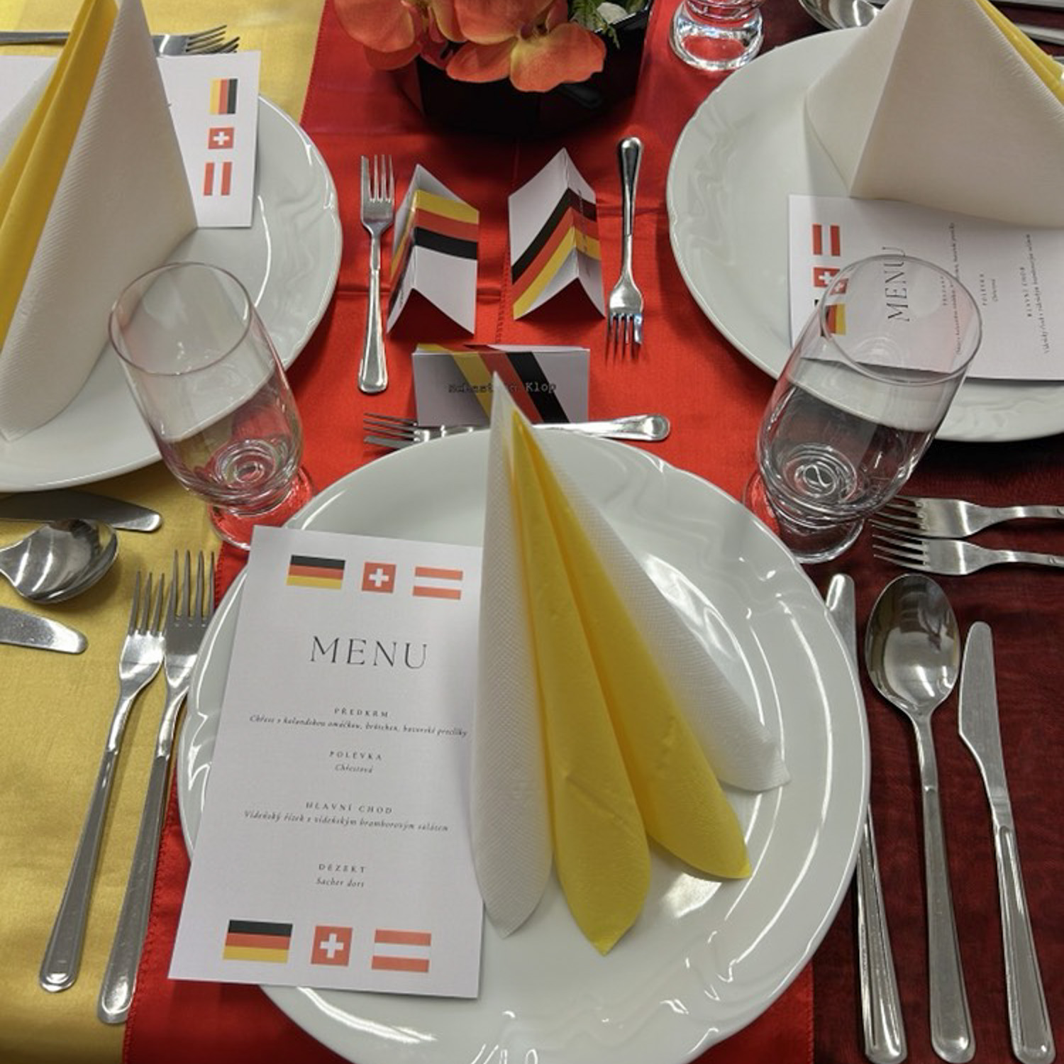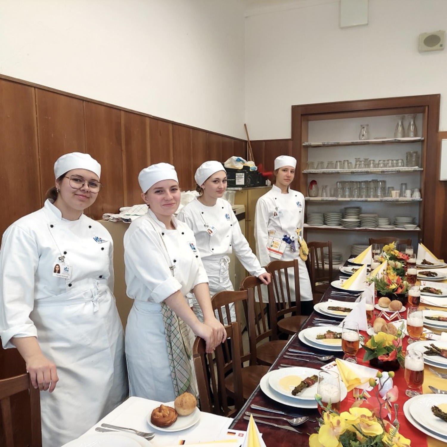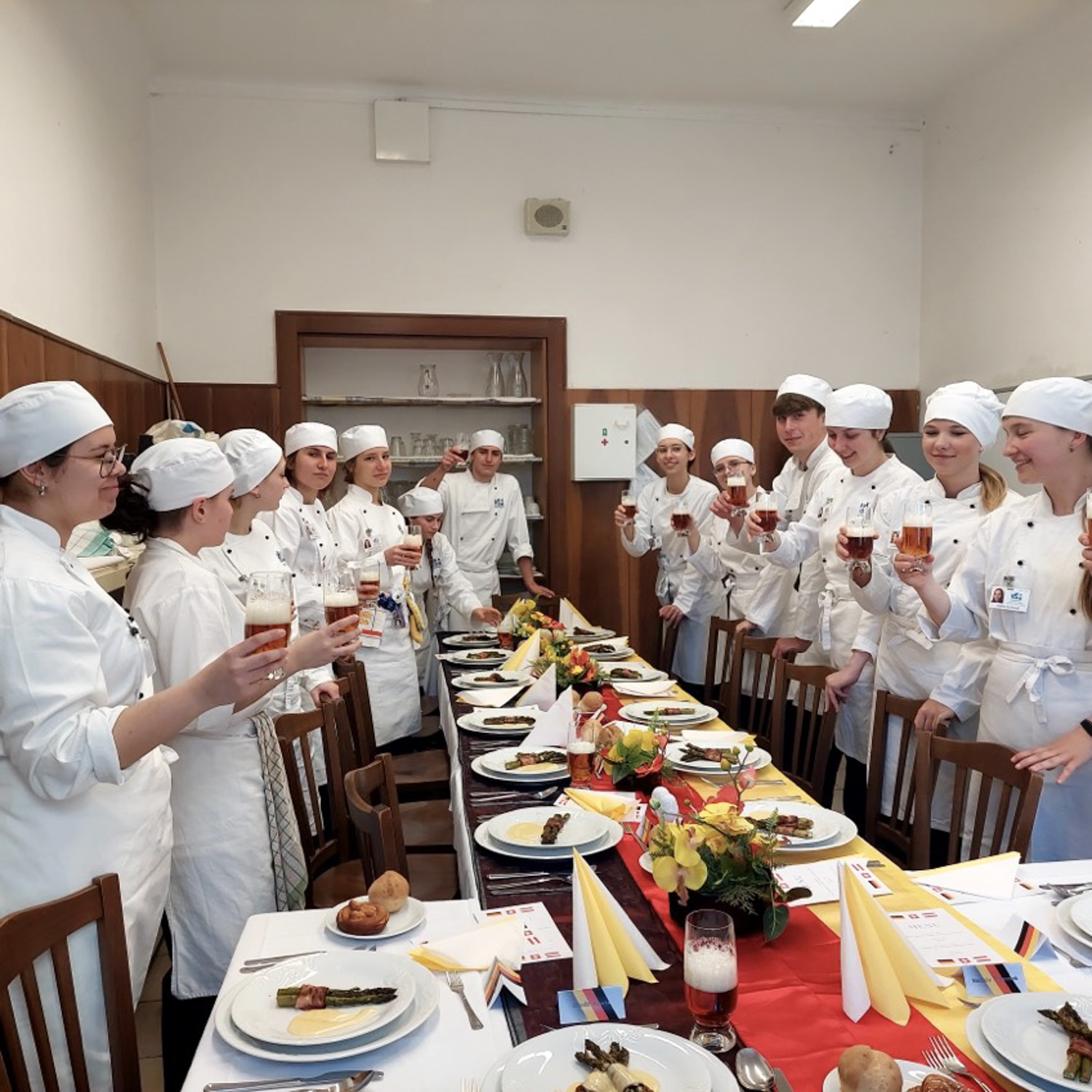 Ze začátku bylo složité vymyslet předkrm, polévku, hlavní chod a dezert tak, aby všechny chutě ladily a zapadaly do německé kuchyně, ale měli jsme podporu a nápady od našich vyučujících, kteří nám pomohli. Naším úkolem nebyla pouze příprava jídla a pití, ale také slavnostní tabule. K tomu jsme museli vymyslet a vytvořit dekorace a výzdobu. Dost jsme se toho báli, ale nakonec byl průběh celého dne velice úspěšný.