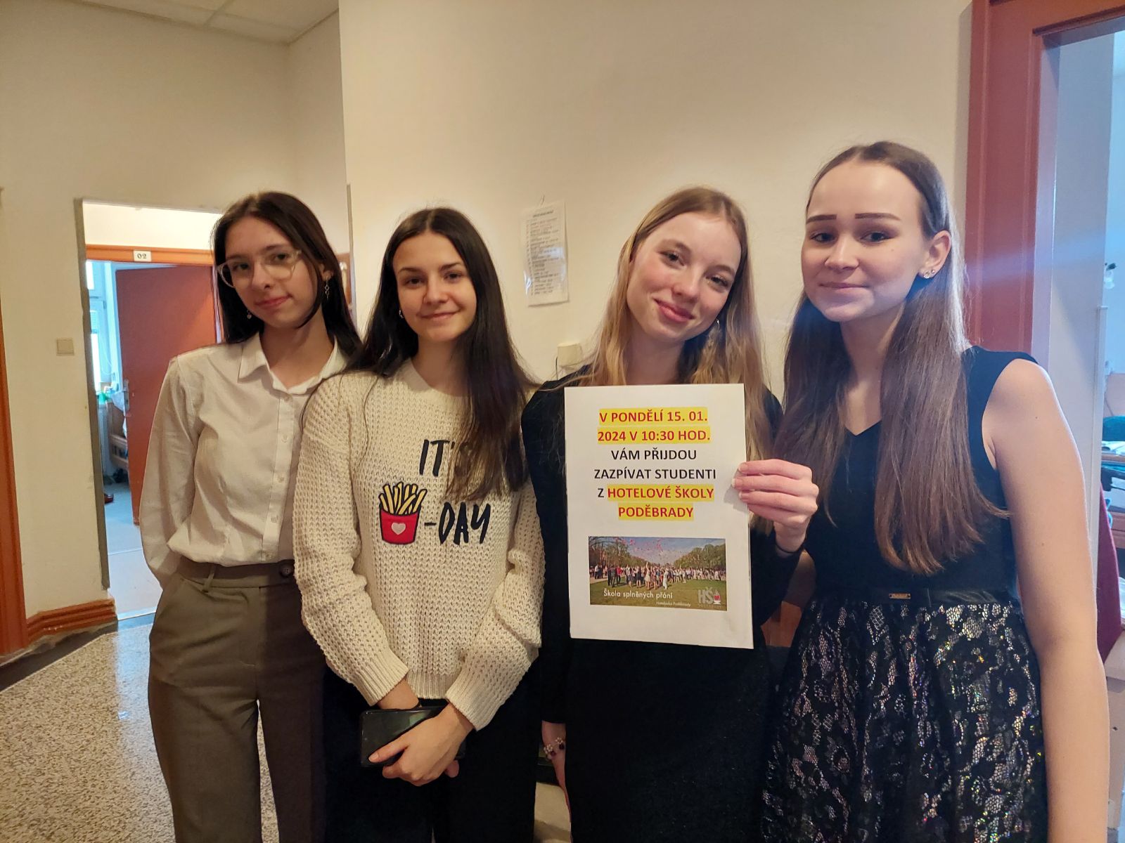 Již tradičně jsme byli zpívat v domově seniorů Luxor v Poděbradech. V pondělí 15. 1. 2024 nás opět srdečně přivítali a my měli možnost seniorům aspoň trochu rozzářit den naším zpěvem a popřát jim tímto vše nejlepší do nového roku.