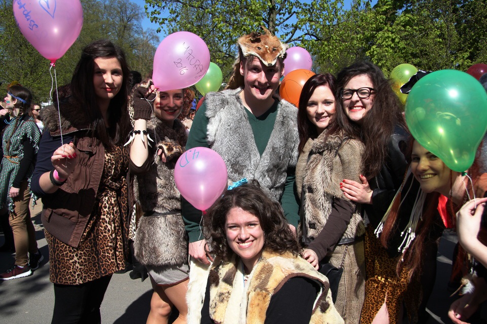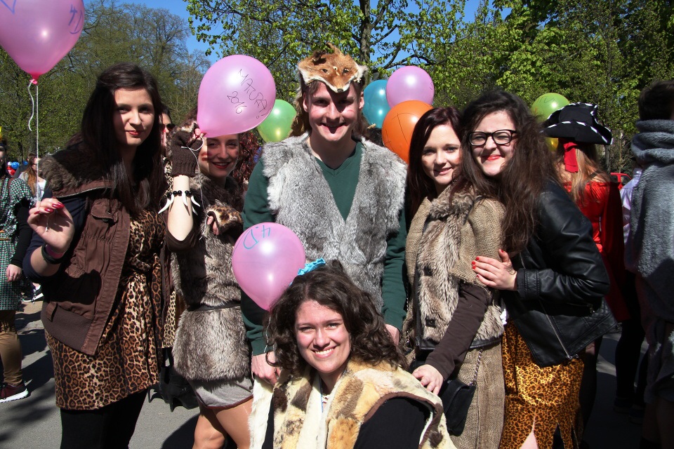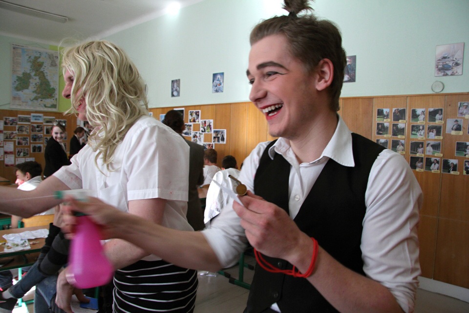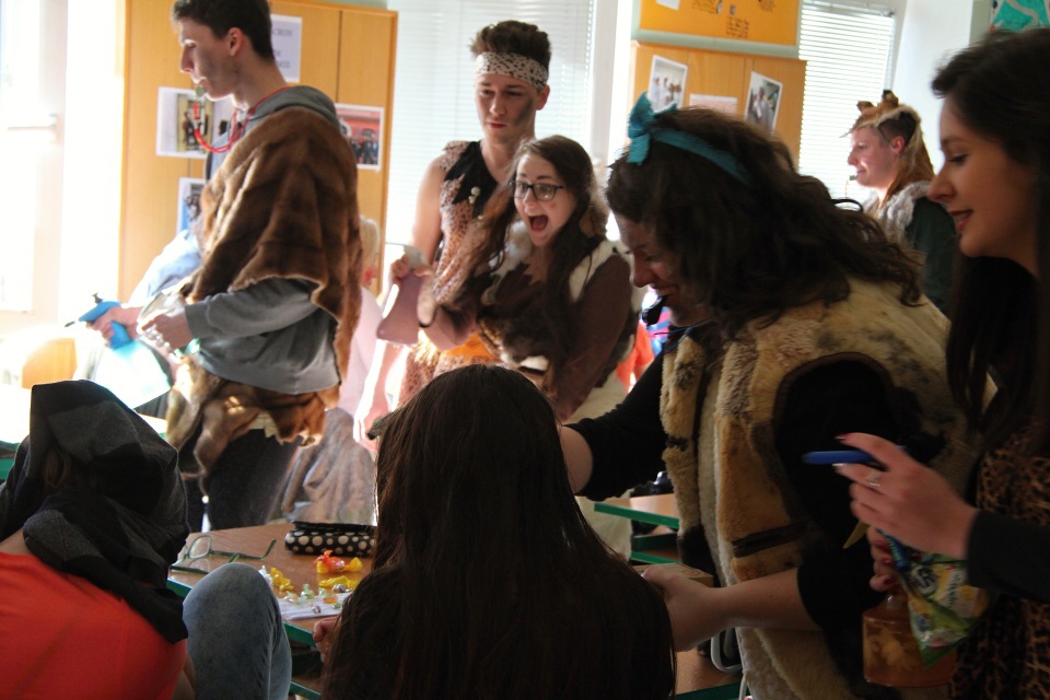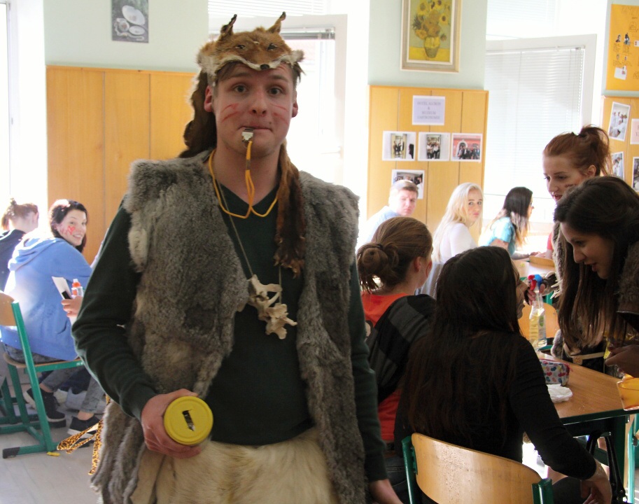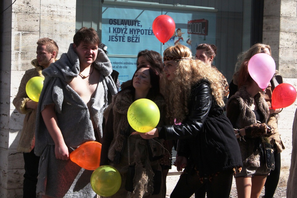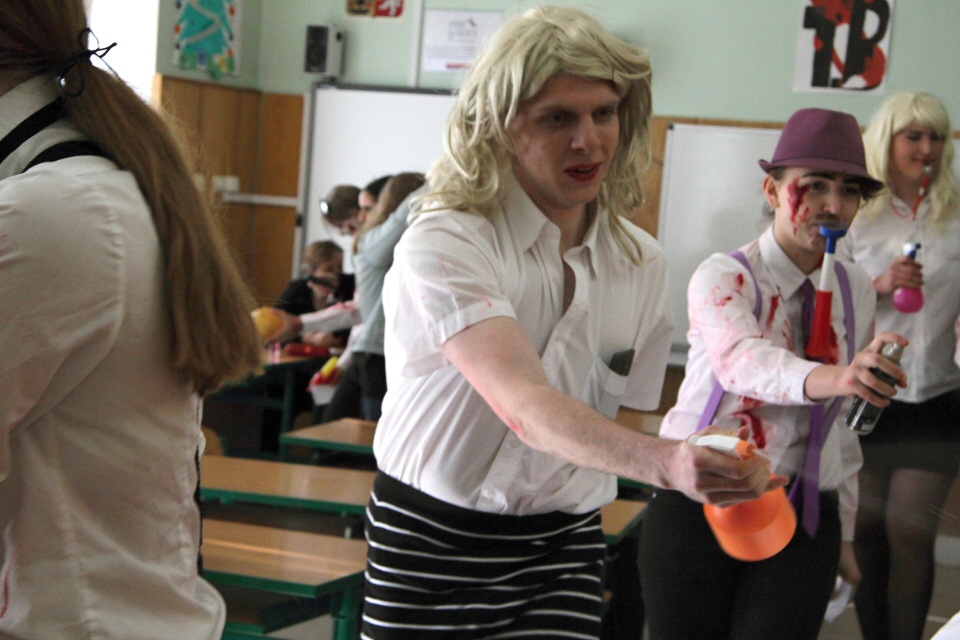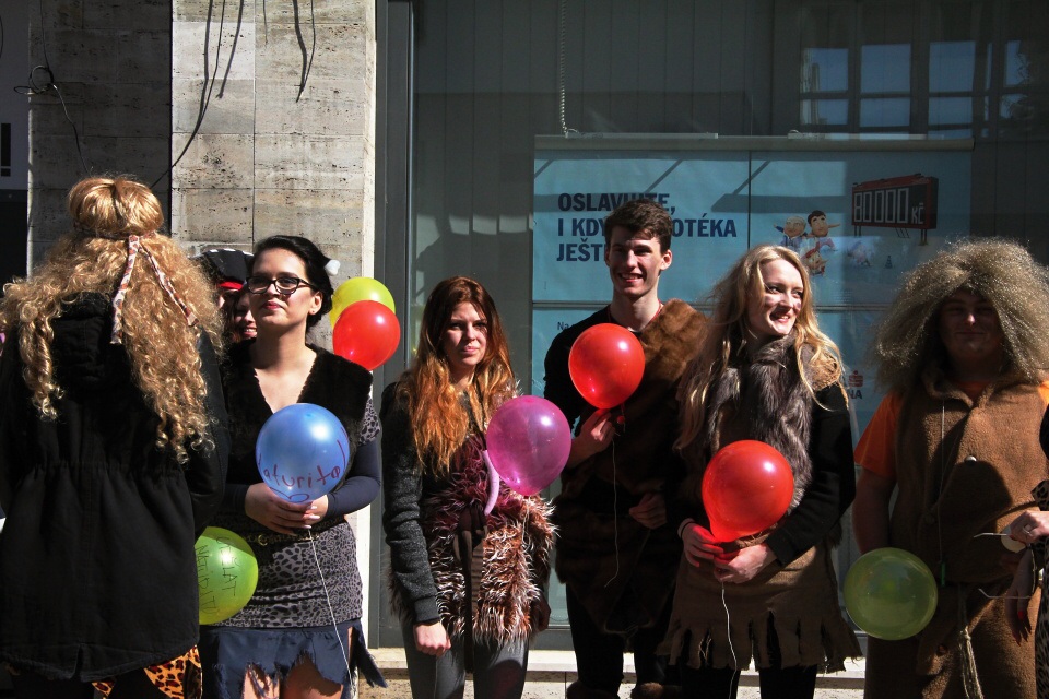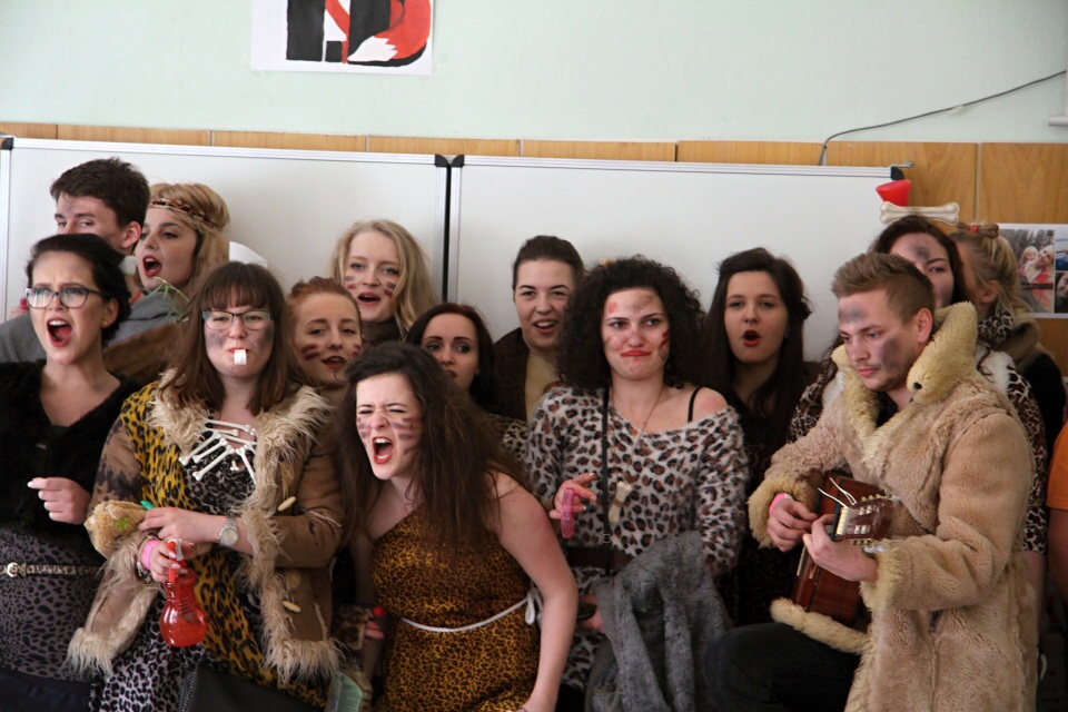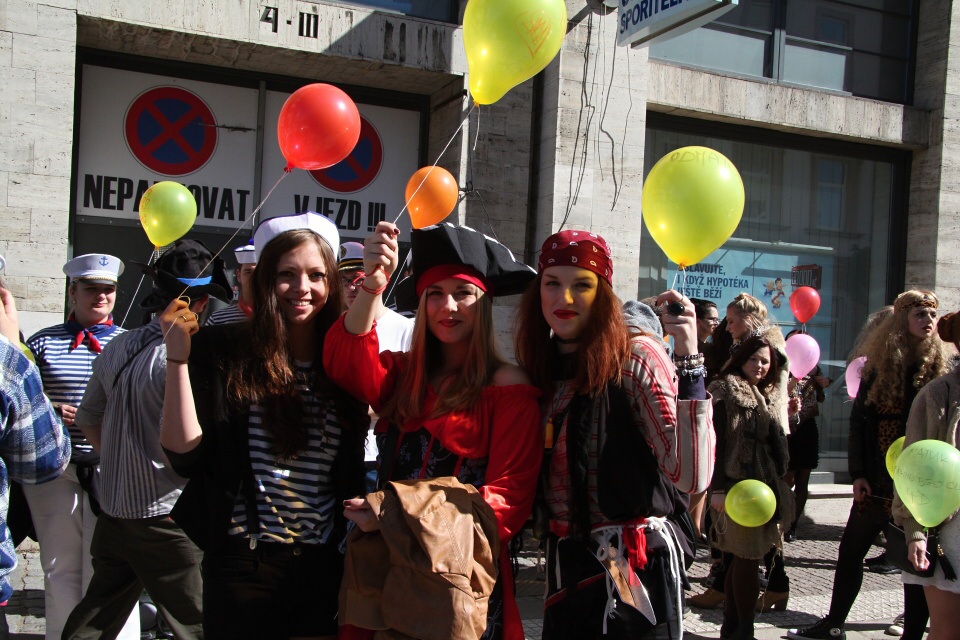Celá škola se shromáždila před školou a mohly začít studentské oslavy, a to poděbradský Majáles, pořádaný studenty naší školy.