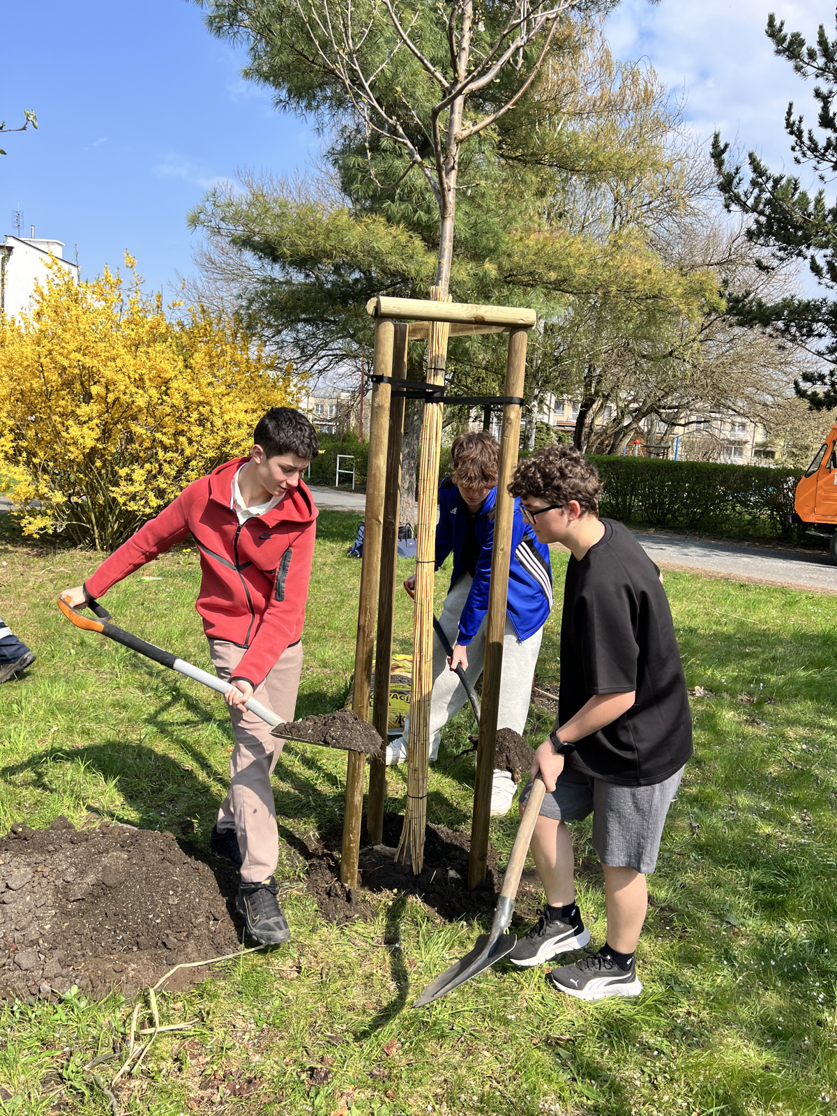 Dne 16. dubna 2026 se vydala naše třída 1.C Hotelové školy Poděbrady společně s paní učitelkou Kuklíkovou a Valentovou sázet strom. Místo odpolední výuky jsme společně vyrazili směrem k obchodnímu centru Billa. Všichni jsme se těšili, že si vyzkoušíme něco nového a zároveň uděláme něco dobrého pro přírodu.