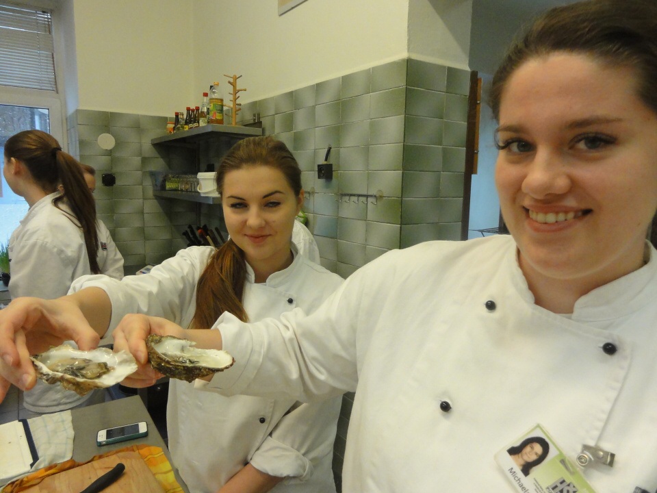 Třetí den byl pro nás všechny vrcholem gastronomického zážitku. Čekala nás příprava asijské kuchyně a mořských plodů. Po příchodu do kuchyně nás hned přivítali živí humři, krevety, olihně a další mořské potvůrky. Vyzkoušeli jsme si, jak se správně otvírá ústřice. Kdo chtěl, mohl i ochutnat. Čistili jsme a kuchali ryby, připravovali krevety á la tempura, dim sum s mletým masem, špízy yakitory, Barma-křupané olihně, pečenou rybu dorádu s fenyklovou krustou a jarní závitky z kuřecího masa. Všechno jídlo bylo vynikající.