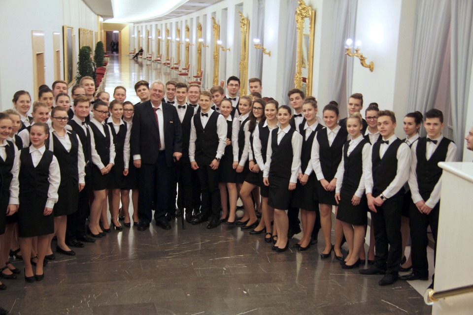 V pátek 19. 2. 2016 se naší třídě 2. A a části třídy 2. B naskytla příležitost obsluhovat pana prezidenta Miloše Zemana na slavnostní večeři na počest slovinského prezidenta Boruta Pahora. Pan prezident si nás vyžádal vzhledem k spokojenosti s minulou obsluhou v dobrovickém cukrovaru. Nyní se ale jednalo o akci mnohem vážnější a slavnostnější už jen proto, že se odehrávala na Pražském hradě.