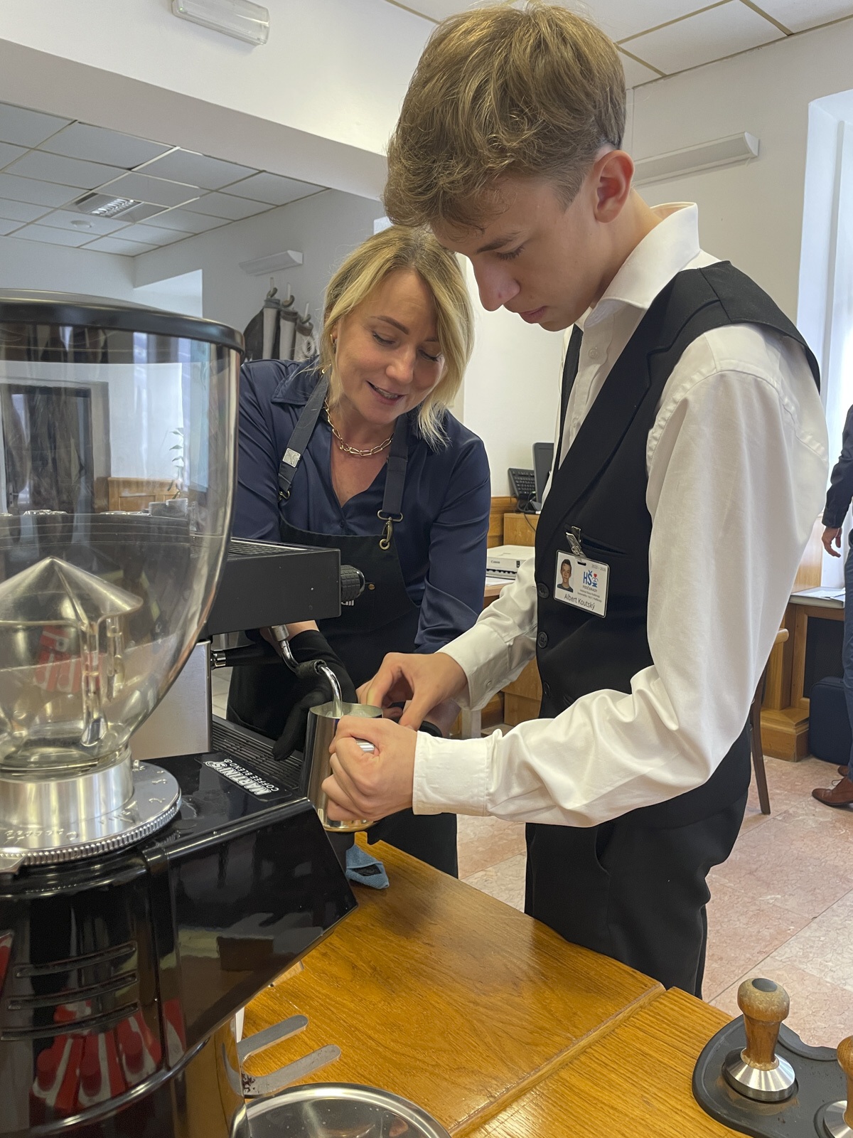 Ve dnech 20. a 21. října 2023 se v prostorách naší školy konal baristický kurz. Lektoři kurzu, manželé Markéta a Martin Smolní, první den ukázali žákům každodenní péči o kávovar, kávomlýnek a správnou přípravu espressa.