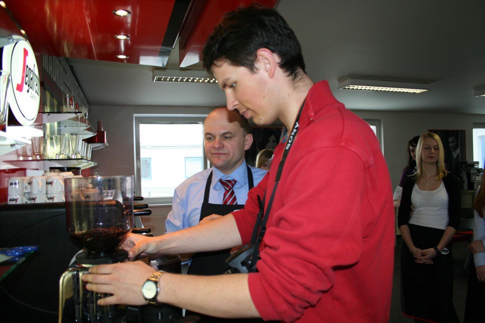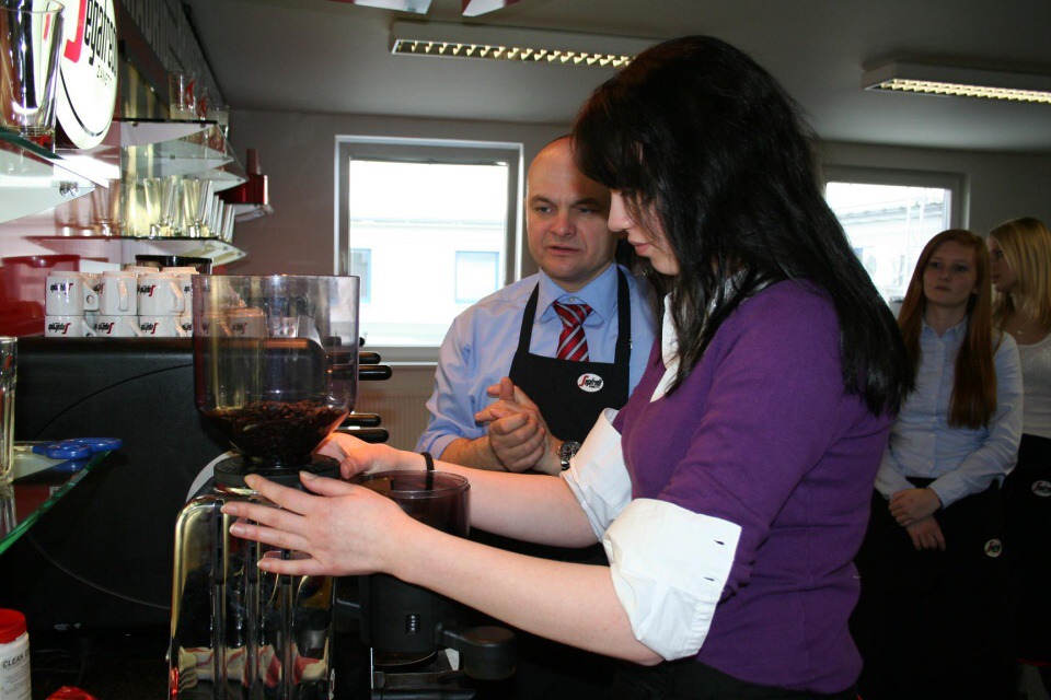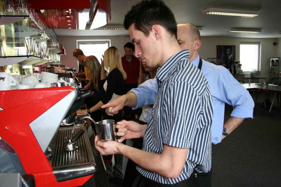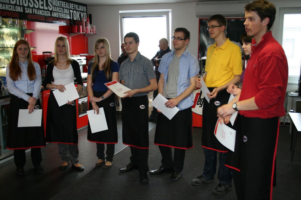 Ve středu 10. dubna 2013 se žáci naší třídy vydali na baristický seminář do školícího střediska baristů společnosti Segafredo Zanetti CR s. r. o. Pod vedením pana Miroslava Splavce jsme se v teoretické části dozvěděli mnoho zajímavých informací o kávě, její historii a o pěstování kávovníků. Poté jsme přešli k praktické části. Naučili jsme se, jak správně našlehat mléčnou pěnu, připravit espresso, latte machiato a cappuccino. Pan Splavec nám i ukázal, jak vytvořit na kávě srdíčko, avšak nebylo to tak jednoduché, jak se na první pohled zdálo. Na závěr praktické části jsme si zkusili kávovar vyčistit, jelikož i čistota kávovaru je jedním z klíčů k přípravě dobré kávy.