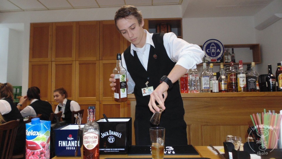Ve dnech 18. - 22. 11. 2015 se na hotelové škole konal barmanský kurz pana Smolného z Pardubic. Tento kurz už zde proběhl několikrát a pokaždé úspěšně. Pan Smolný nás naučil míchat drinky, pracovat se shakerem a předal nám spoustu užitečných informací z oblasti barmanství. Každý z nás si odnesl nějakou informaci, kterou do budoucna určitě využije. Pan Smolný učí velmi zábavným a naučným stylem. Ke každému produktu má svůj příběh, při kterém se pobavíte. Tento kurz bych doporučila každému, nejen těm, kteří by tuto práci chtěli dělat, ale i těm, kteří ještě nevědí, co dělat chtějí. Absolvováním tohoto kurzu získáte nové zkušenosti i certifikát.