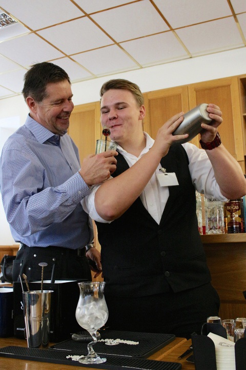 Na začátku měsíce října na naší škole proběhl barmanský kurz pod vedením pana Martina Smolného. Podle mého názoru je to jeden z nejlepších kurzů. Už první den nás čekalo míchání deseti koktajlů, což byla samozřejmě ta nejzajímavější část kurzu, která však probíhala každý den, ale až po dopolední teorii. Ani teorie nebyla zdaleka nudná, jak by každý čekal. Pan Smolný nám ji vždy zpestřil nějakou svou historkou a životními zkušenostmi. Nyní už víme, že vodka se dá vyrobit i z brambor a jaký je rozdíl mezi whisky a whiskey.