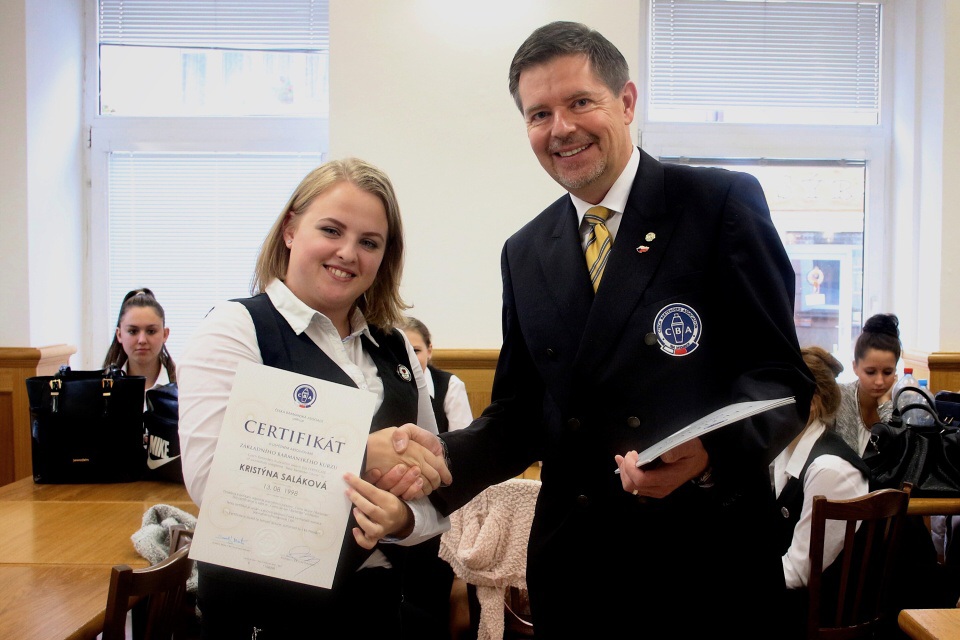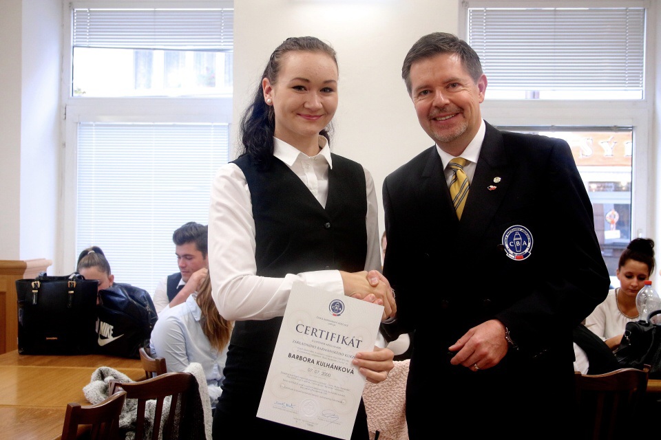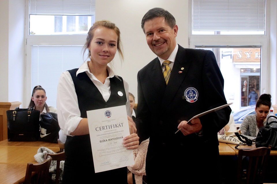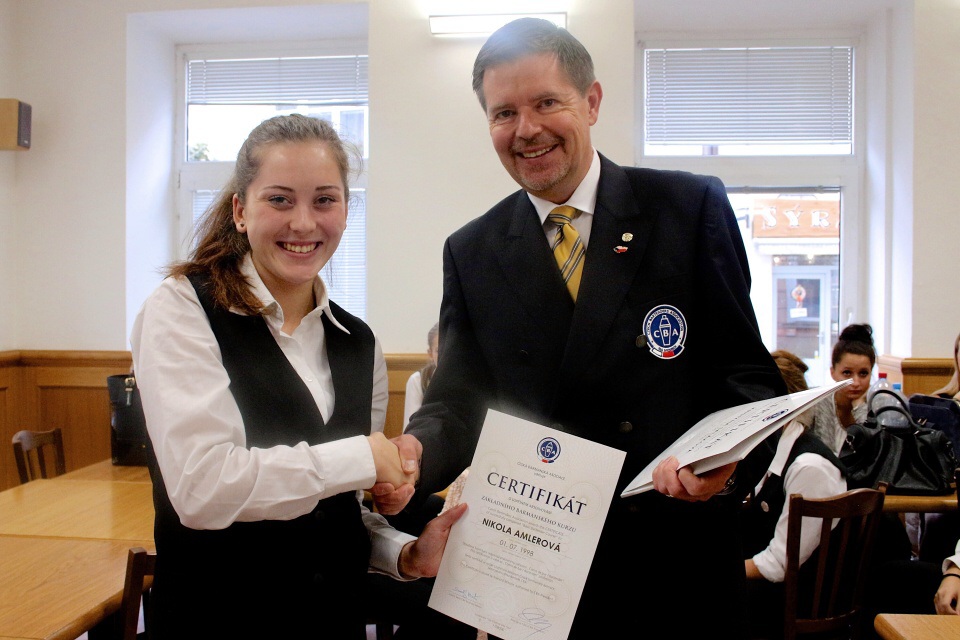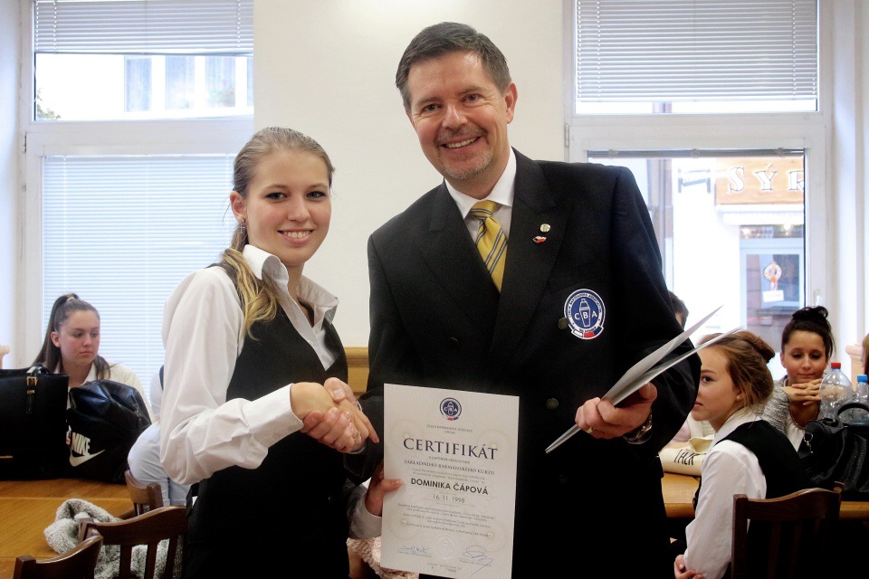 Pátý den nás čekala teoretická a praktická zkouška. Test z probrané teorie jsme všichni zvládli na jedničku. Pak přišla praktická zkouška, tam už sice u některých zapracovaly nervy, ale i tak se s ní všichni poprali. Po obědě nezbývalo už nic jiného než rozdat certifikáty o splnění základního barmanského kurzu, které nám rozdala paní Eva Keclíková a pan Martin Smolný.